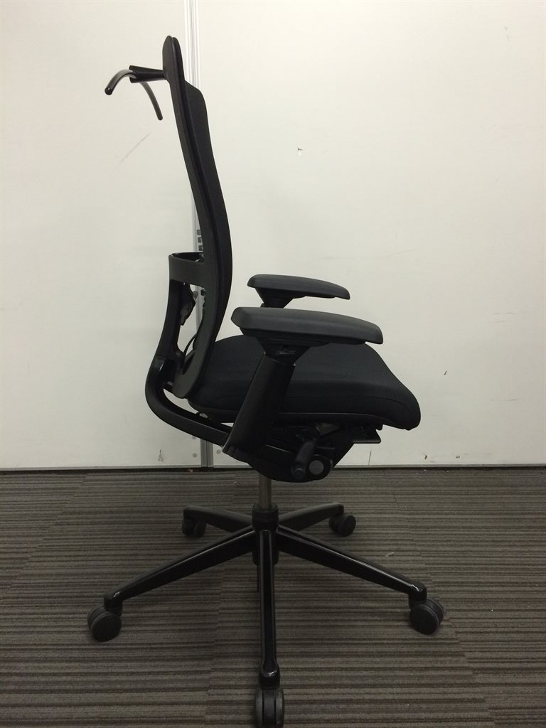 【在庫セール品・7脚限定】【T11】■ヘイワース(HAWORTH)ゾディーチェア 肘付ハイバック ■可動肘 ■ブラック ■ランバーサポート付 ■コートハンガー付【デザイン性の高いハイバックメッシュチェア】