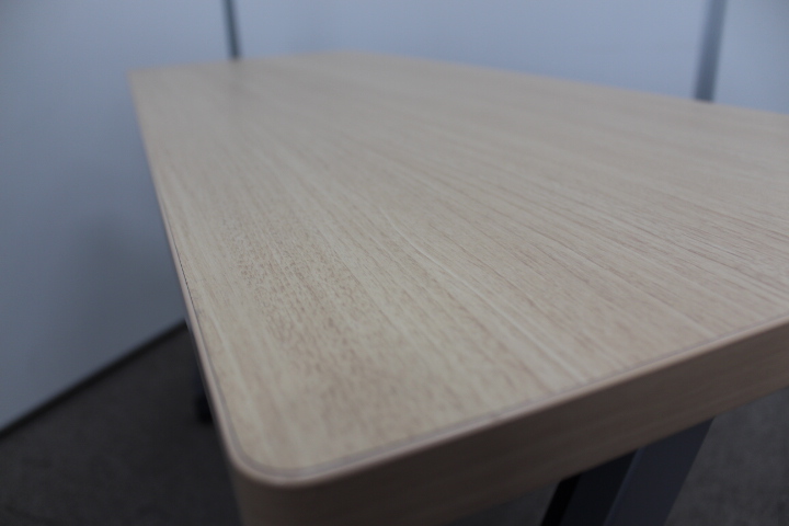 【天板跳ね上げ式でコンパクトに!キャスター付きで移動も楽々!】■オカムラ(okamura)製 フラプター(FLAPTOR)シリーズ サイドスタックテーブル 木目ナチュラル 幕板付き 《オフィスバスターズ福岡博多店は、福岡を拠点として、日本全国へ中古オフィス用品・オフィス家具を提供しております》