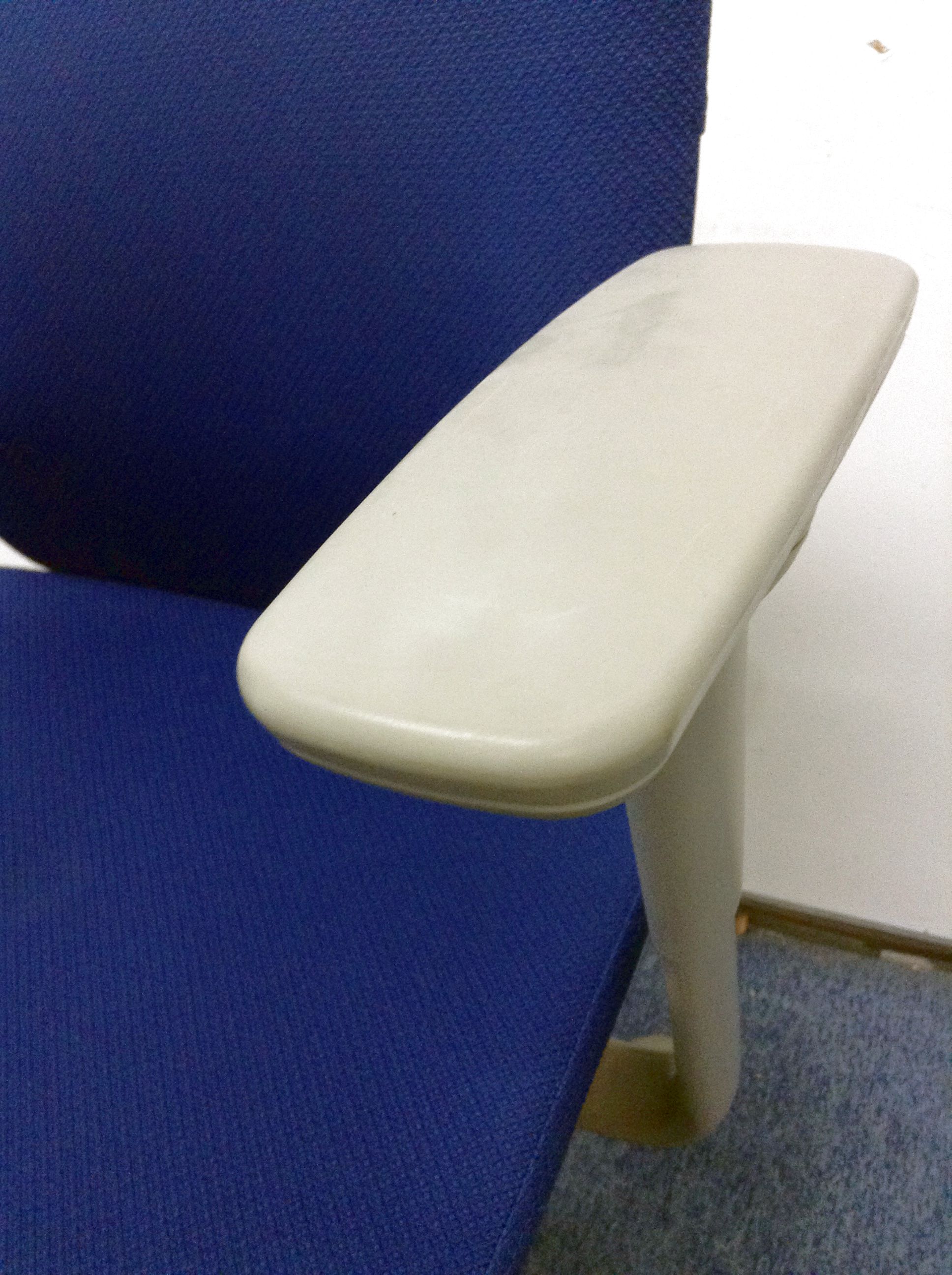 - かなり強い濃い黄ばみ・変色が商品全体にある。(例、座面・背もたれ、脚部等にある。)
