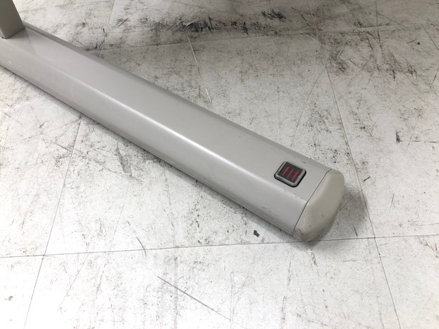 - 一部不具合あり天板歪み、アジャスター無し、キャスター使用不可ようなそのテーブルの本来の効用を果たすための機能以外の一部が使用不可な状態。(例、キャスターロッ ク機能使用不可、棚板無し等がある。)