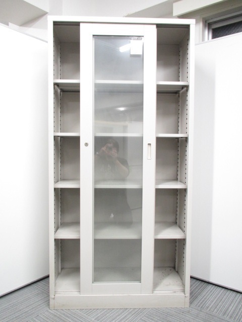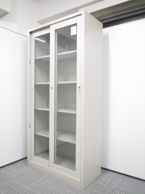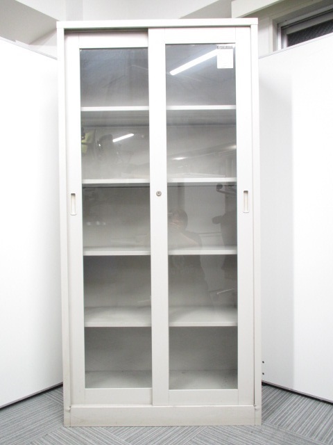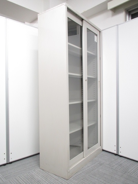 【中が見えて書類を探しやすい】■コクヨ製 ■ガラス引戸書庫 ニューグレー色- 在庫数