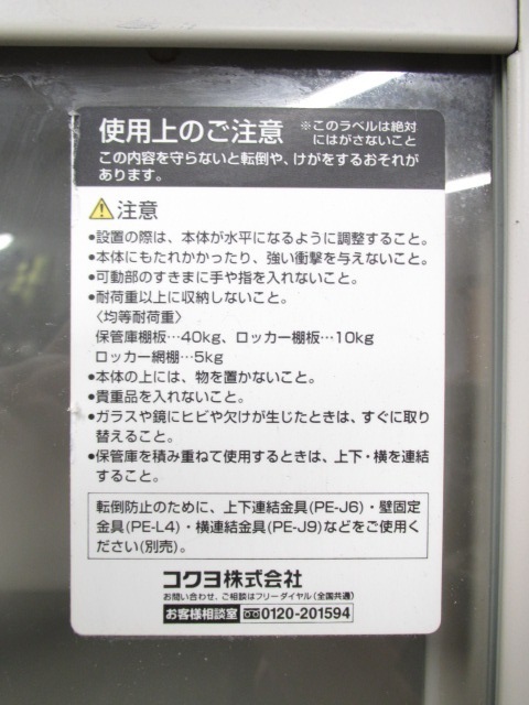 - 一部不具合ありそ引出の開閉不可、施錠不可、棚板無しといったの書庫の本来の効用を果たすための機能以外の一部が使用不可(例、扉、引出の開閉がしづらいなどがある。 )