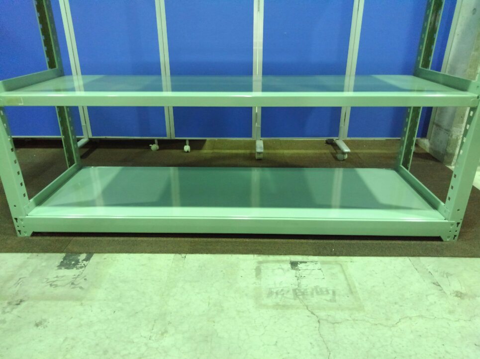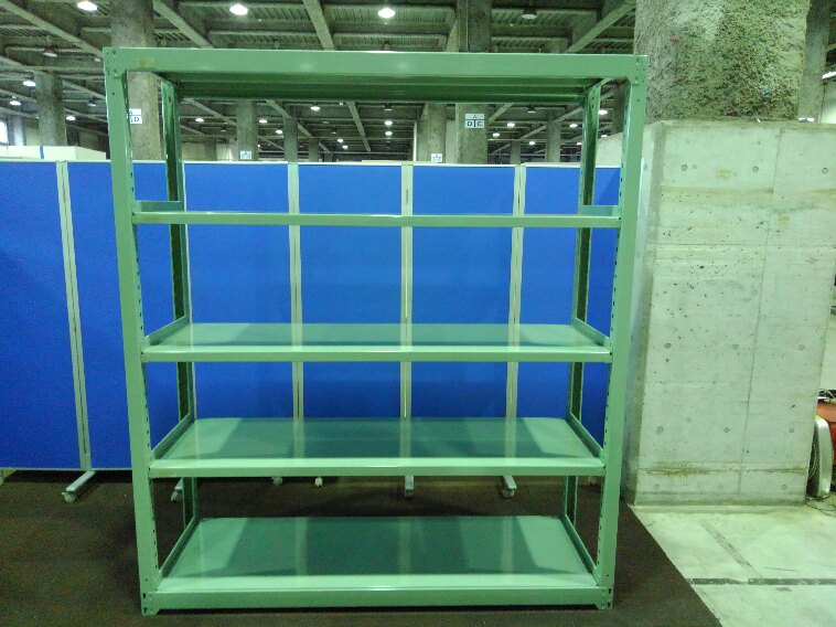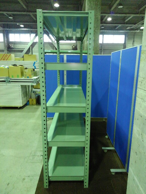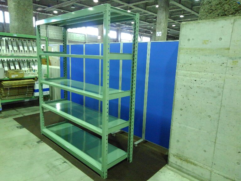 グリーン色の中古ラックが大量(18台)入荷しました! 天地5段 耐荷重:段/300kg ボルトレスなので組立も簡単! ※マテハン本舗の中古商品は、千葉県柏市に在庫がございます。- マテハン本舗