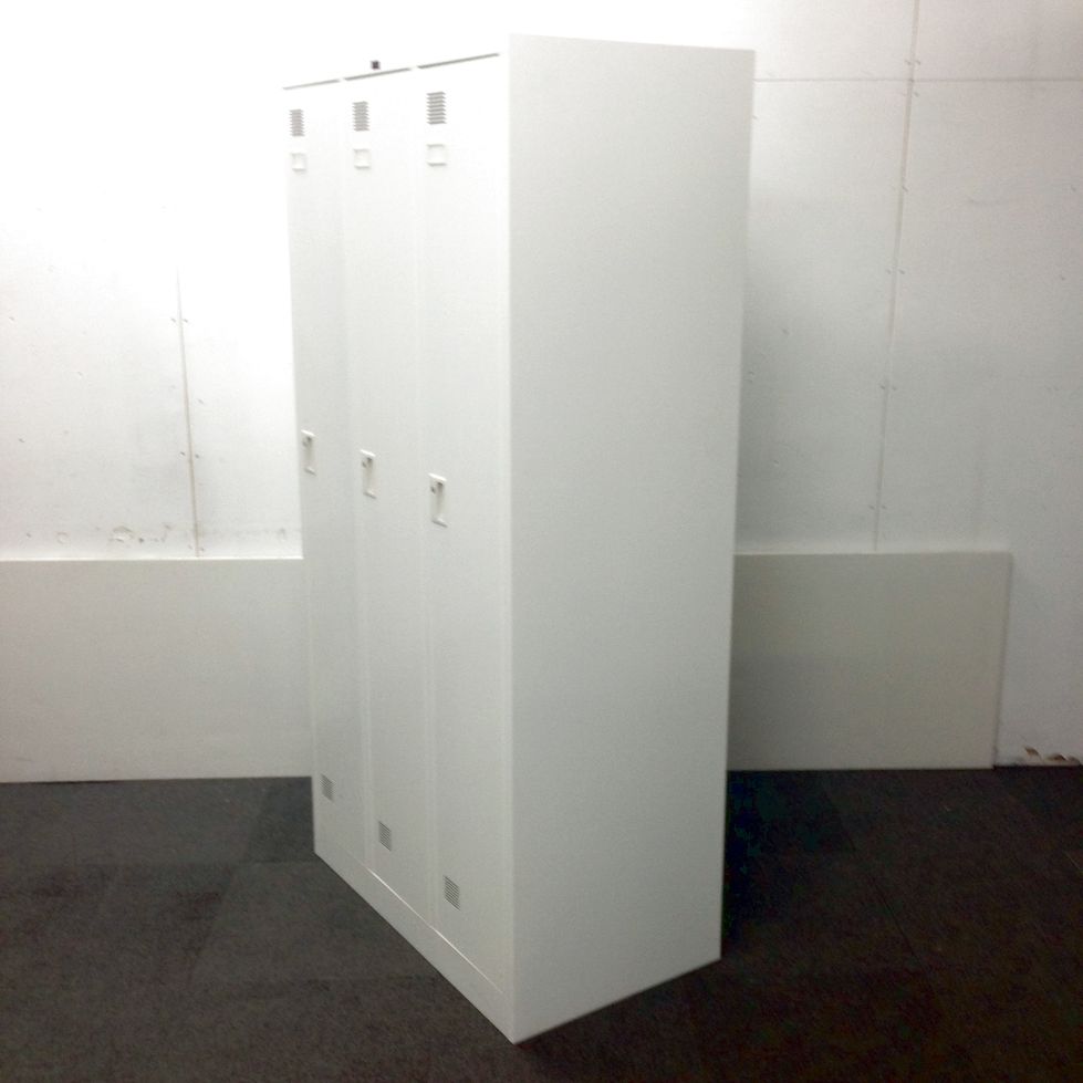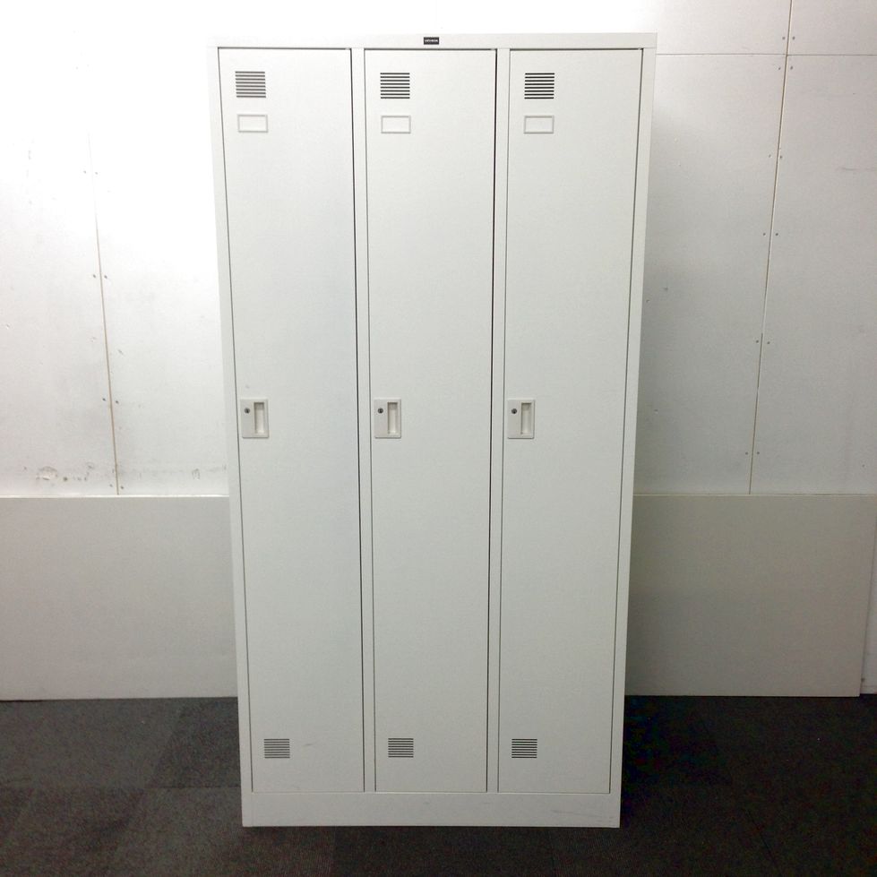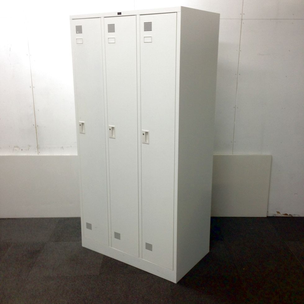 【コート類も入る!シンプルデザインの縦長ロッカー!】■ウチダ製 システムロッカーNS型 3人用 シリンダー錠 ■ホワイト【UWC】