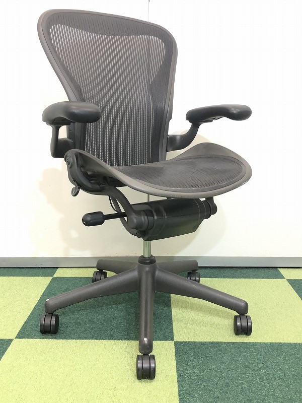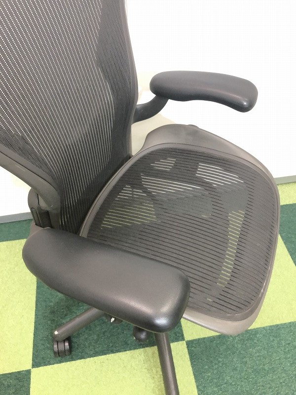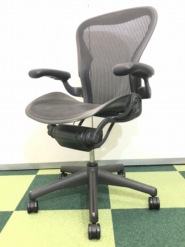 【スタイリッシュなデザインに快適な座り心地!】■ハーマンミラー アーロンチェア Bサイズ 固定肘 ランバーサポート無 ※キズあり・劣化ありのためお安く!【A01029474】
