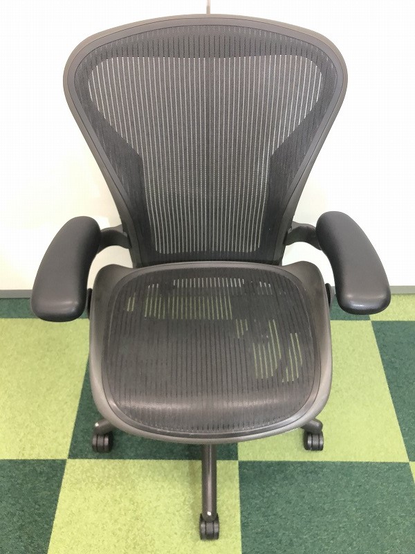 【ワーキングチェアの名作!】■ハーマンミラー アーロンチェア 固定肘 Bサイズ スタンダード ランバーサポート付 ※キズあり商品のためお安く! 【Herman Miller Aeron Chair】A01029474