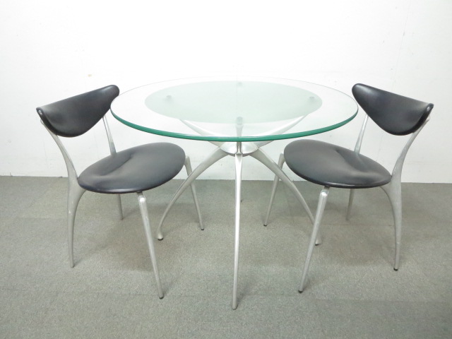 【ADAL LINK】■リンク ガラステーブル&リンクチェア4脚セット【高級デザイン家具】- 川崎店