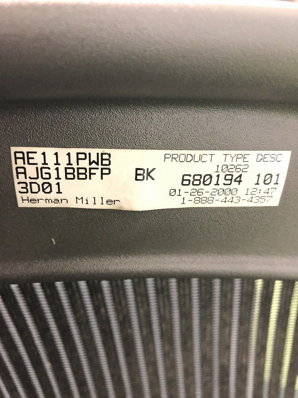 【中古】 アーロンチェア AE111PWB AJG1BBFP 3D01 Herman Miller/ハーマンミラー 肘付ハイバックチェア 235315
