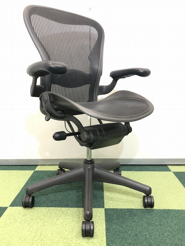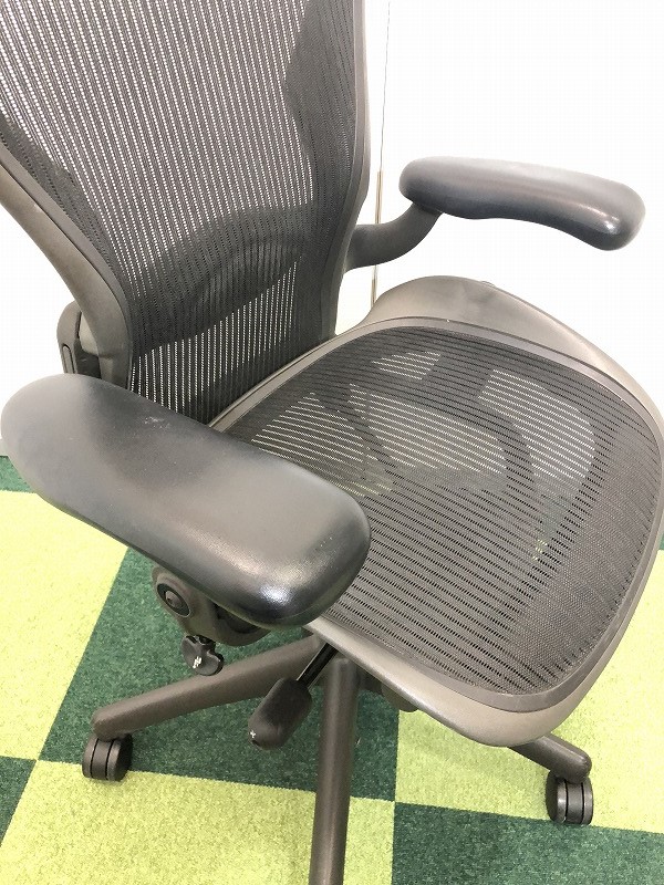 【★状態イマイチのためお安く!】■ハーマンミラー製 アーロンチェア Bサイズ 固定肘 ※キズあり・ランバーサポート無・昇降ガス圧弱めのためお安く!【訳あり特価品】