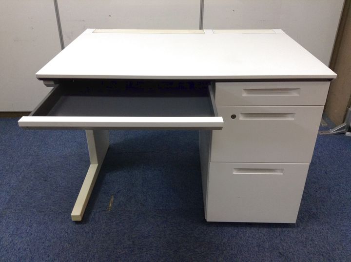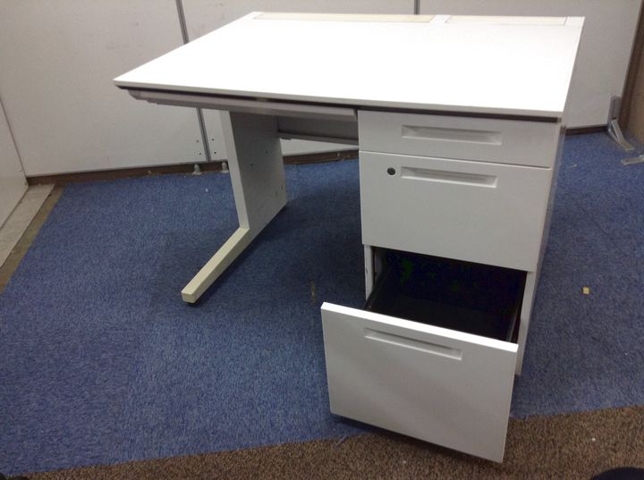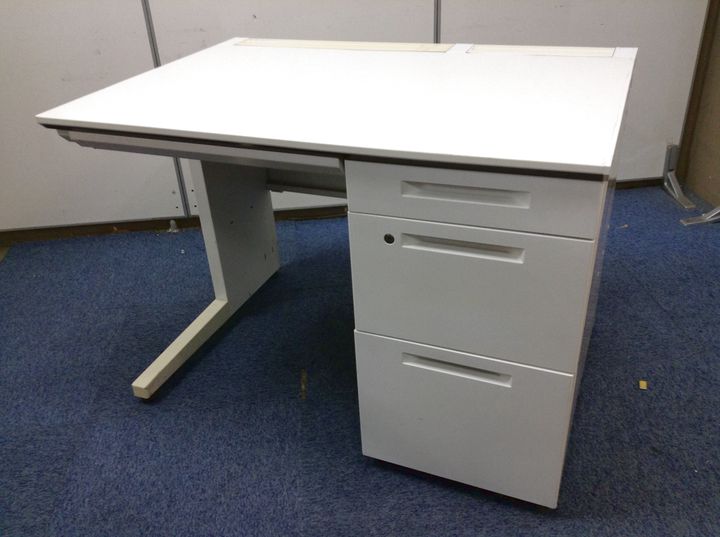 【省スペースのオフィスに最適!コンパクトサイズの片袖机!配線カバーも充実の高品質デスク!】■コクヨ(KOKUYO)製 アイエス(iS)シリーズ 片袖机 W1000×D700㎜ ■シリンダー錠 ■ホワイト【弊社使用欄:A01050382】