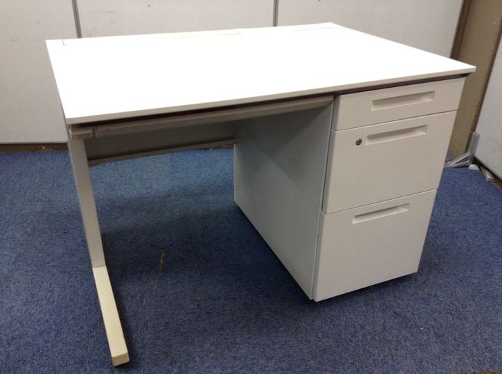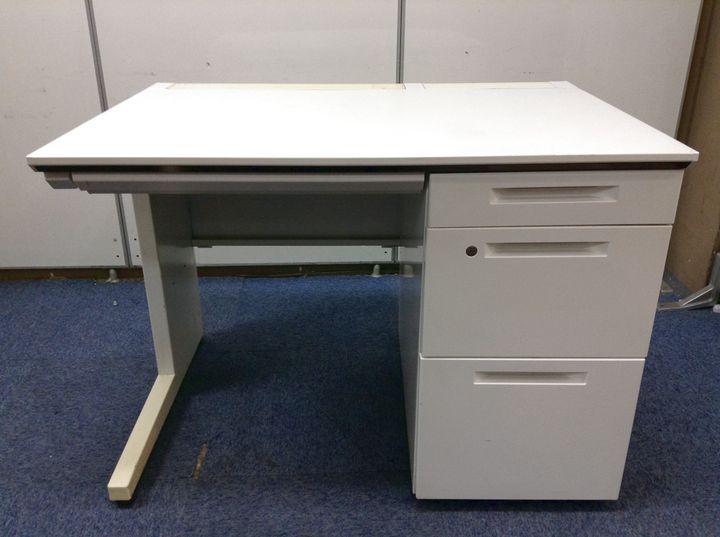 【省スペースのオフィスに最適!コンパクトサイズの片袖机!配線カバーも充実の高品質デスク!】■コクヨ(KOKUYO)製 アイエス(iS)シリーズ 片袖机 W1000×D700㎜ ■シリンダー錠 ■ホワイト【弊社使用欄:A01050382】【KN】