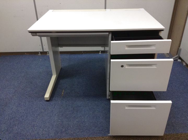 コクヨ iSデスクシステム 片袖机 W1000のコンパクトサイズ ホワイトカラー 鍵付き シリンダー錠 3段引き出しで大容量な保管機能