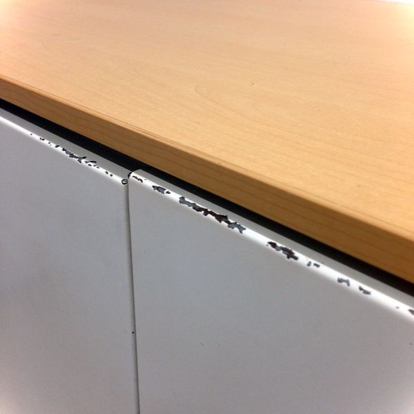 - かなり強い濃い黄ばみ・変色が商品全体にある。(例、天板、正面、背部、サイド部分にある。)