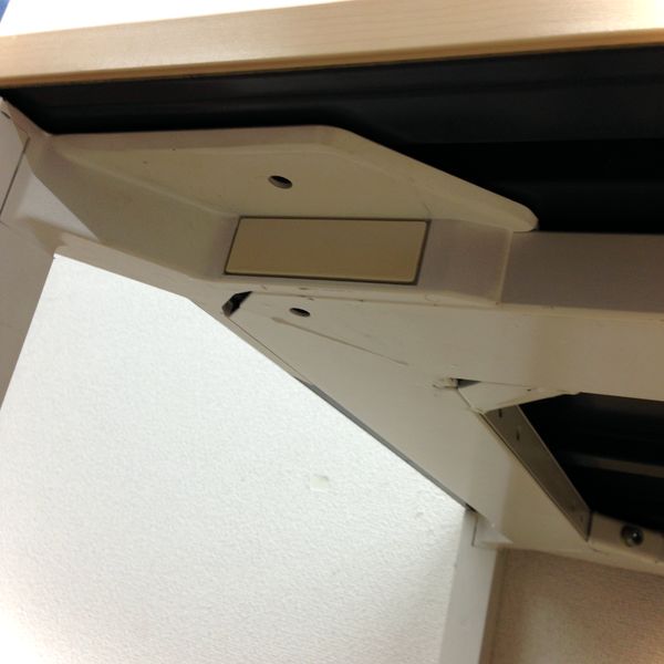 薄い天板とフレーム構造で通常の片袖机は幕板とか煩わしい・・