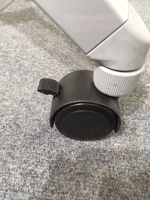 - 一部不具合あり天板歪み、アジャスター無し、キャスター使用不可ようなそのテーブルの本来の効用を果たすための機能以外の一部が使用不可な状態。(例、キャスターロッ ク機能使用不可、棚板無し等がある。)