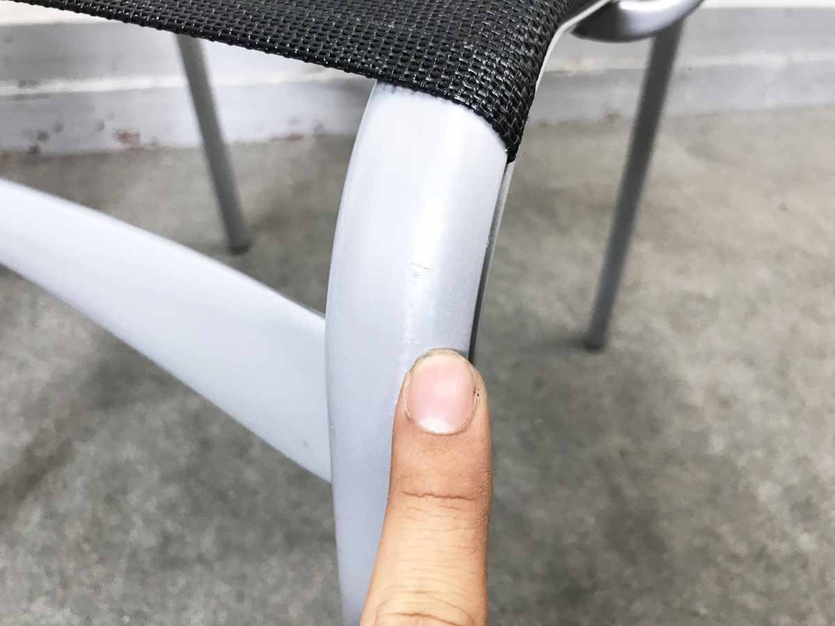 - 目立つ箇所あり傷・破れ・ほつれ・へたり・しわが多数または深い傷・破れ・ほつれ・へたり・しわが一部ある。※座面・背もたれ、シェル、脚部等にある。