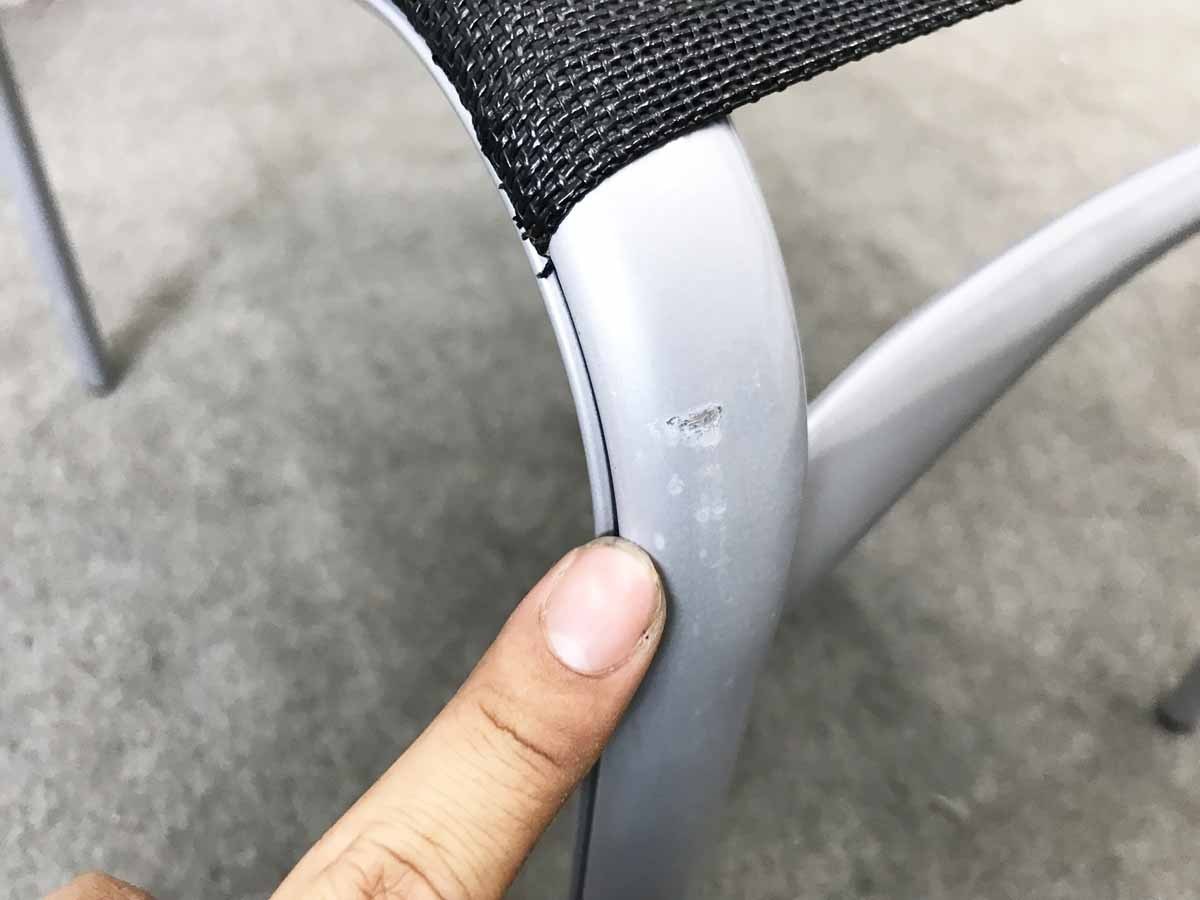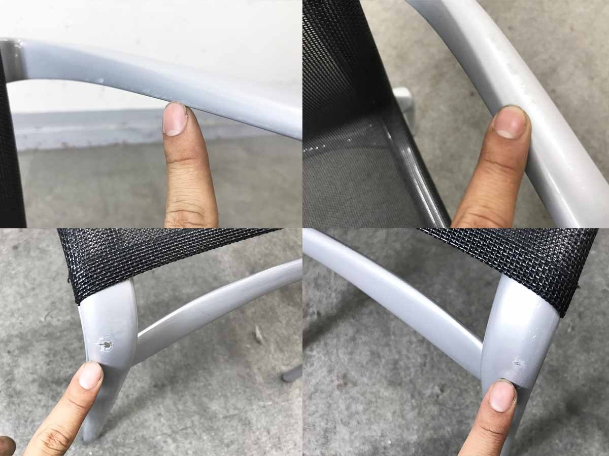 - 不具合多数そのチェアの本来の効用を果たすための機能に不具合ある。(例、オフィスチェアの上下昇降キャスター付きミーティングチェアのキャスター使用不可のような不 具合)