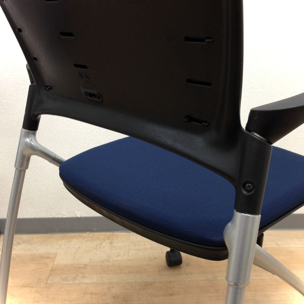 【定価6万円】【ソフトベンディングシェルが背を優しく受け止める!】■イトーキ(ITOKI) マノスチェア(MANOSS) 肘無し スタッキングチェア ミーティングチェア ■背パッド付 ■キャスター脚 ■ブルー