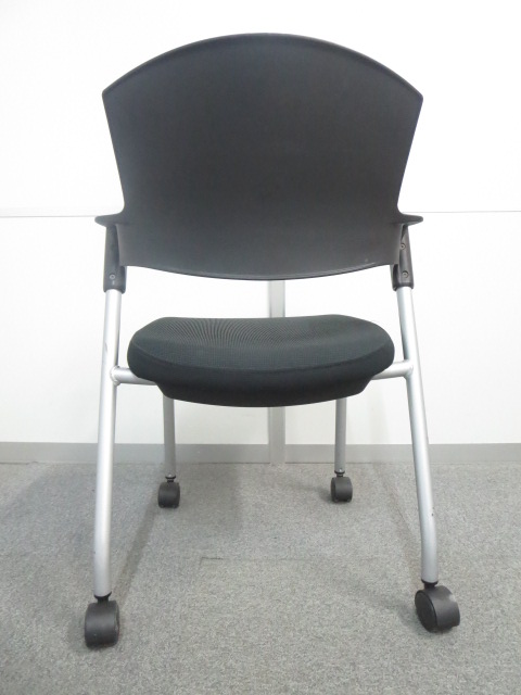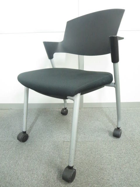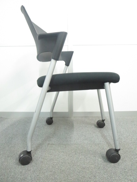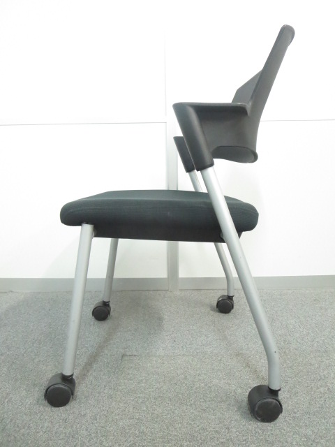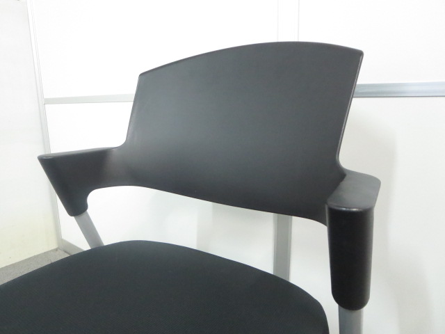 【6/16・8脚入荷予定!】【シンプルスマートなスタッキングチェア!分厚いクッションで長時間でも快適な座り心地!】■コクヨ製 プロッティ スタッキングチェア 肘付ミーティングチェア ■固定肘 ■キャスター付 ■ブラック ■背面樹脂 オフィスバスターズ梅田本店