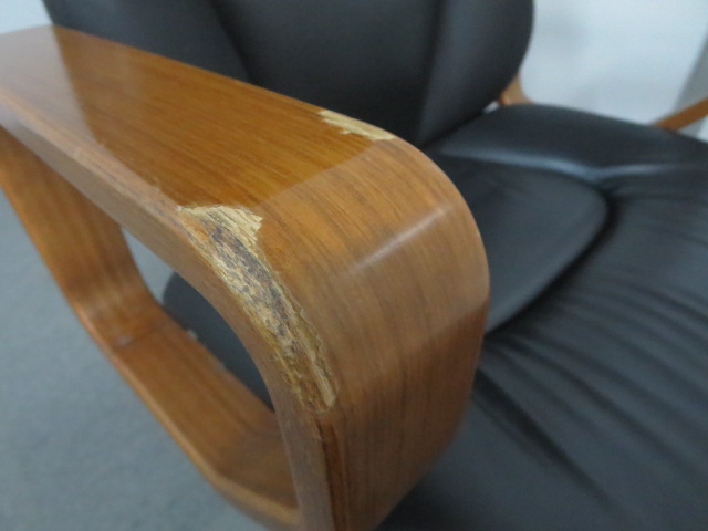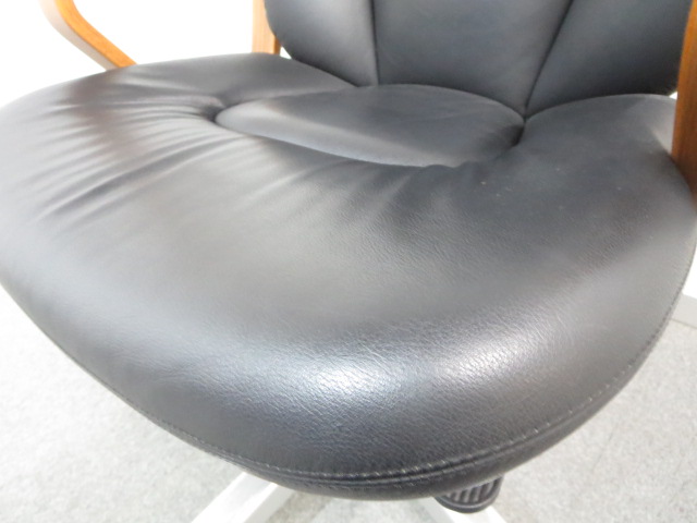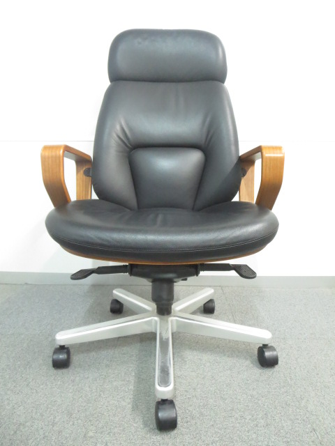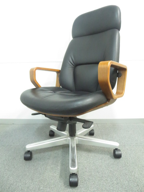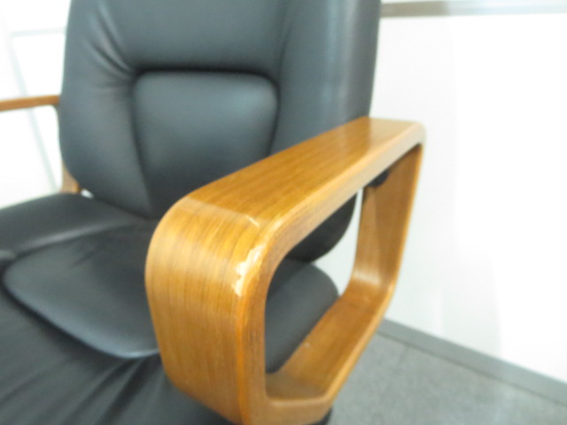 【肘キズあり値下げ品】■天童木工 マネジメントチェア(木製肘)ブラック【革張り】- 川崎店