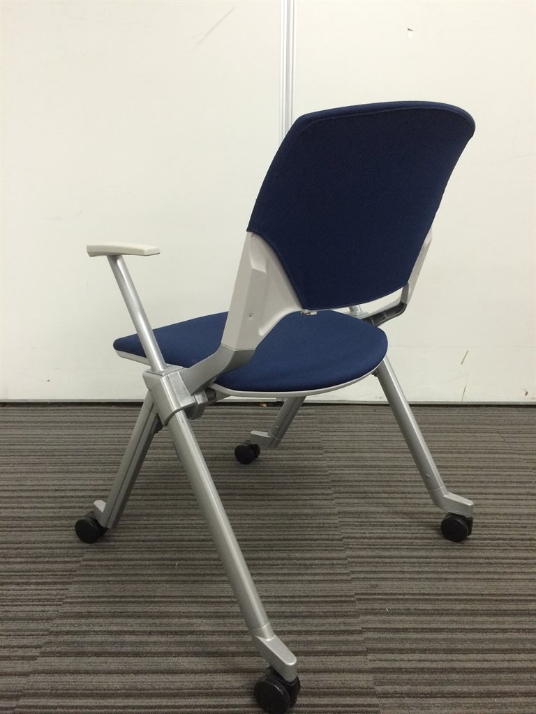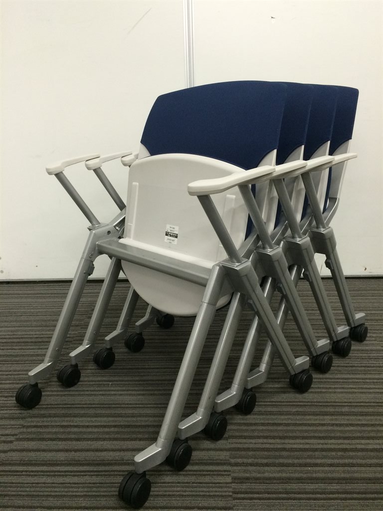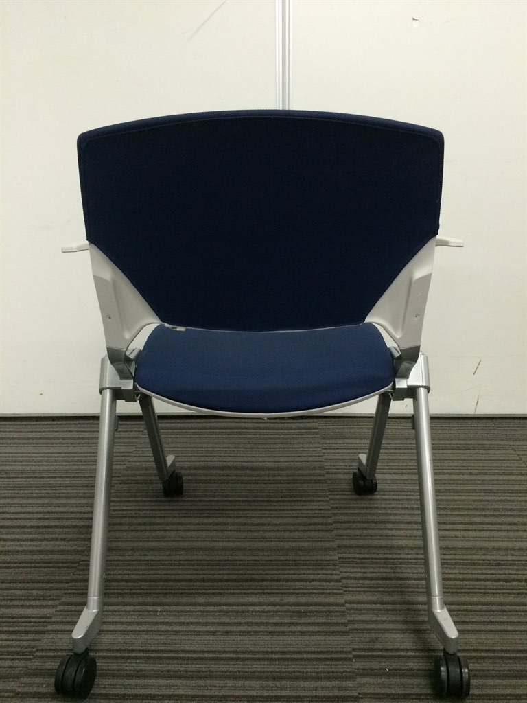 【12脚入荷!】内田洋行製スタッキングチェア|2018年製|キャスター付で移動もらくらく! 中古 ネスティング可能 ブルー ロット 会議室 【倉庫在庫品】