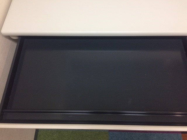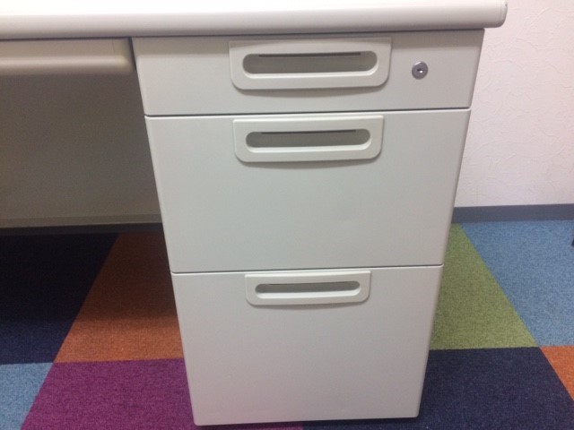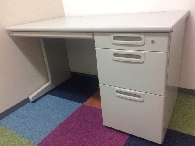 【パーツ一部欠け有の為お安く】W1200のサイド収納付きデスク◆ホワイト色◆お求め急げ!【RP】- 品川・三田店