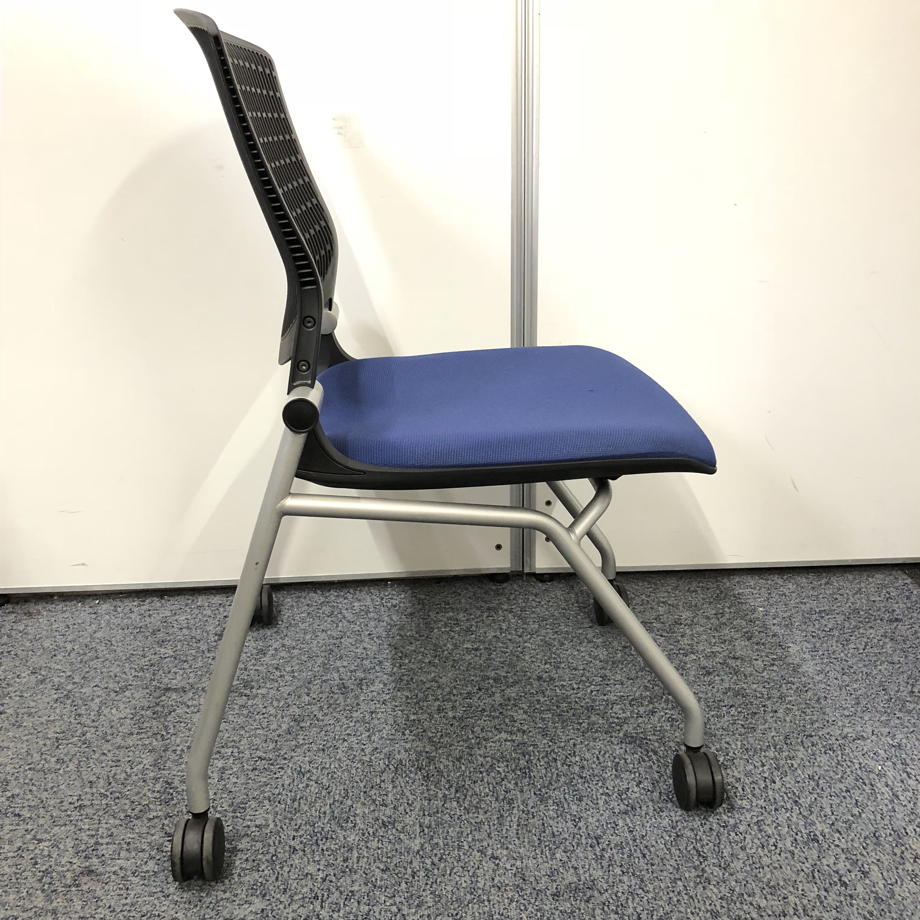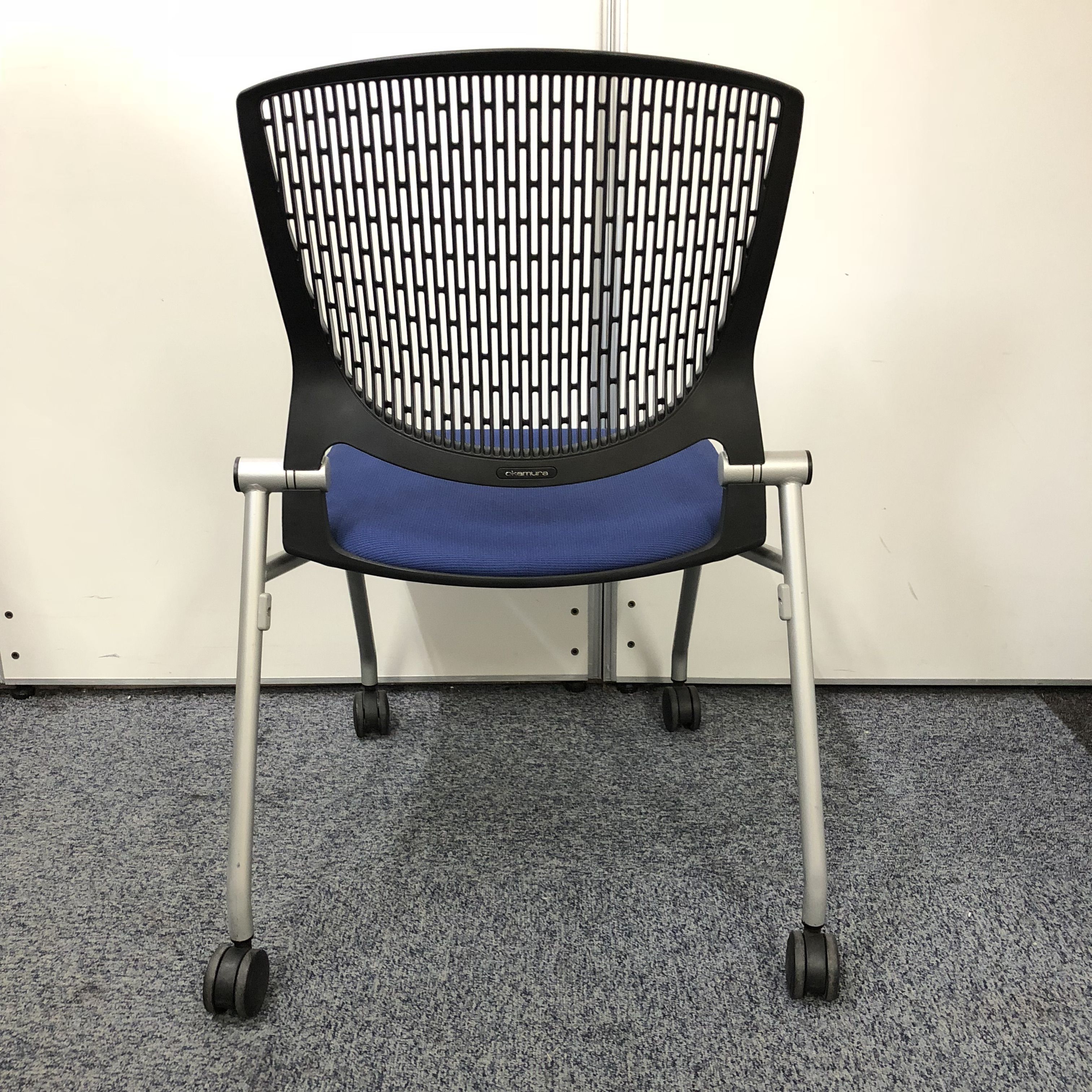 【おつとめ品】【出し入れ簡単!スタック可能!】オカムラ製ネスティングチェア・グラータ 人気のブルーカラー- 名古屋本店