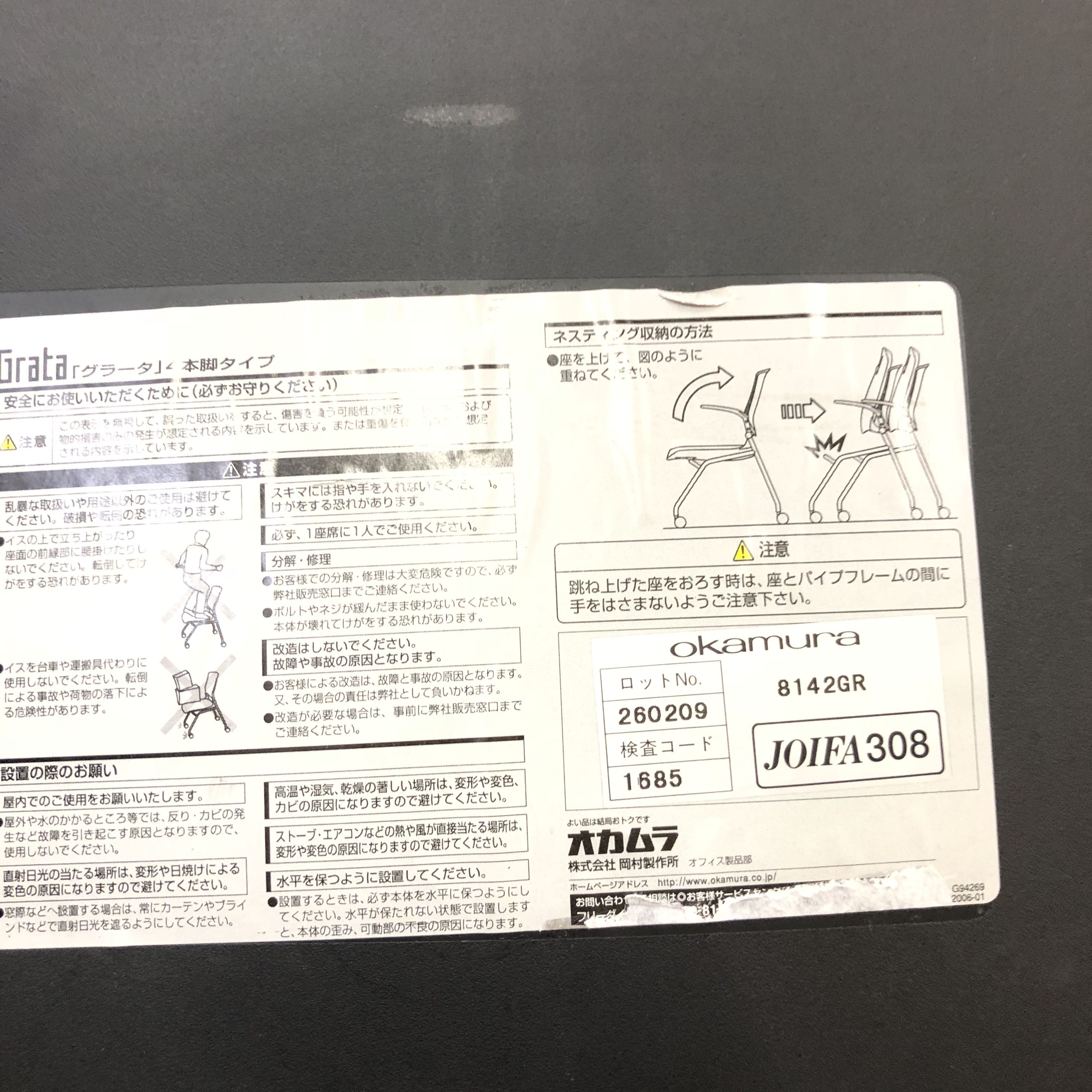 【中古】 グラータチェア 8142GR オカムラ/okamura スタッキングチェア 236217