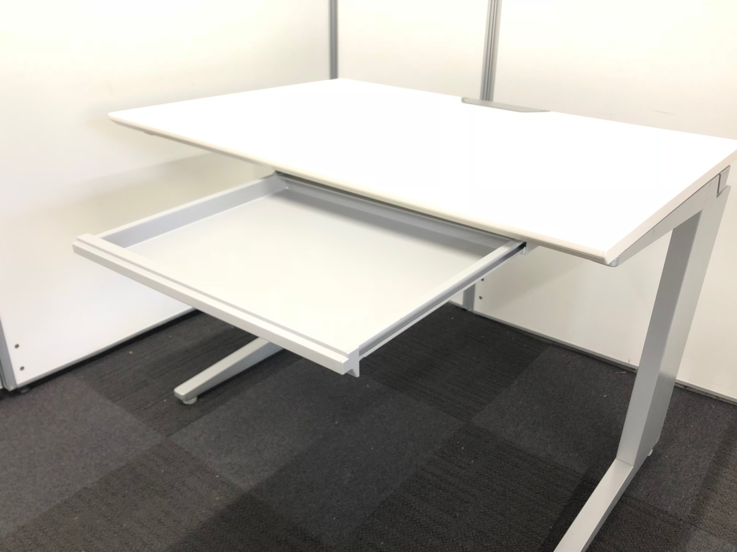 入り口には最近話題のフリアドデスクを展示!八王子・立川・西東京のお客様のスタイリッシュなオフィス作りのお手伝いをいたします!