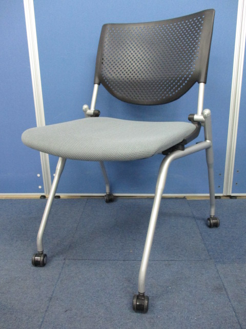 スペース空間を最大限に生かせる座面が跳ね上げ可能なネスティングチェア! ■オカムラ/プロスタック/グレー