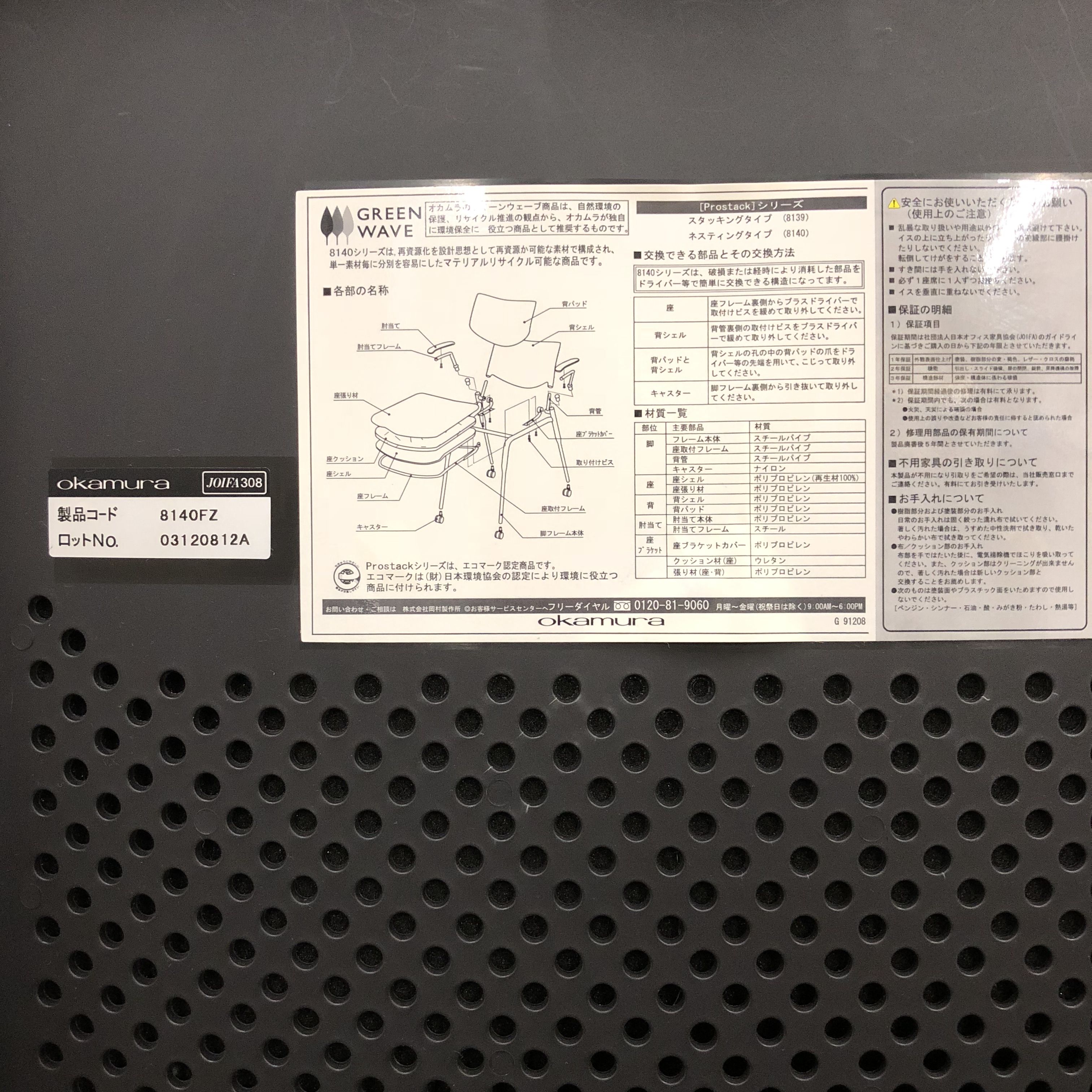 【中古】 プロスタック 8140FZ オカムラ/okamura スタッキングチェア 236446