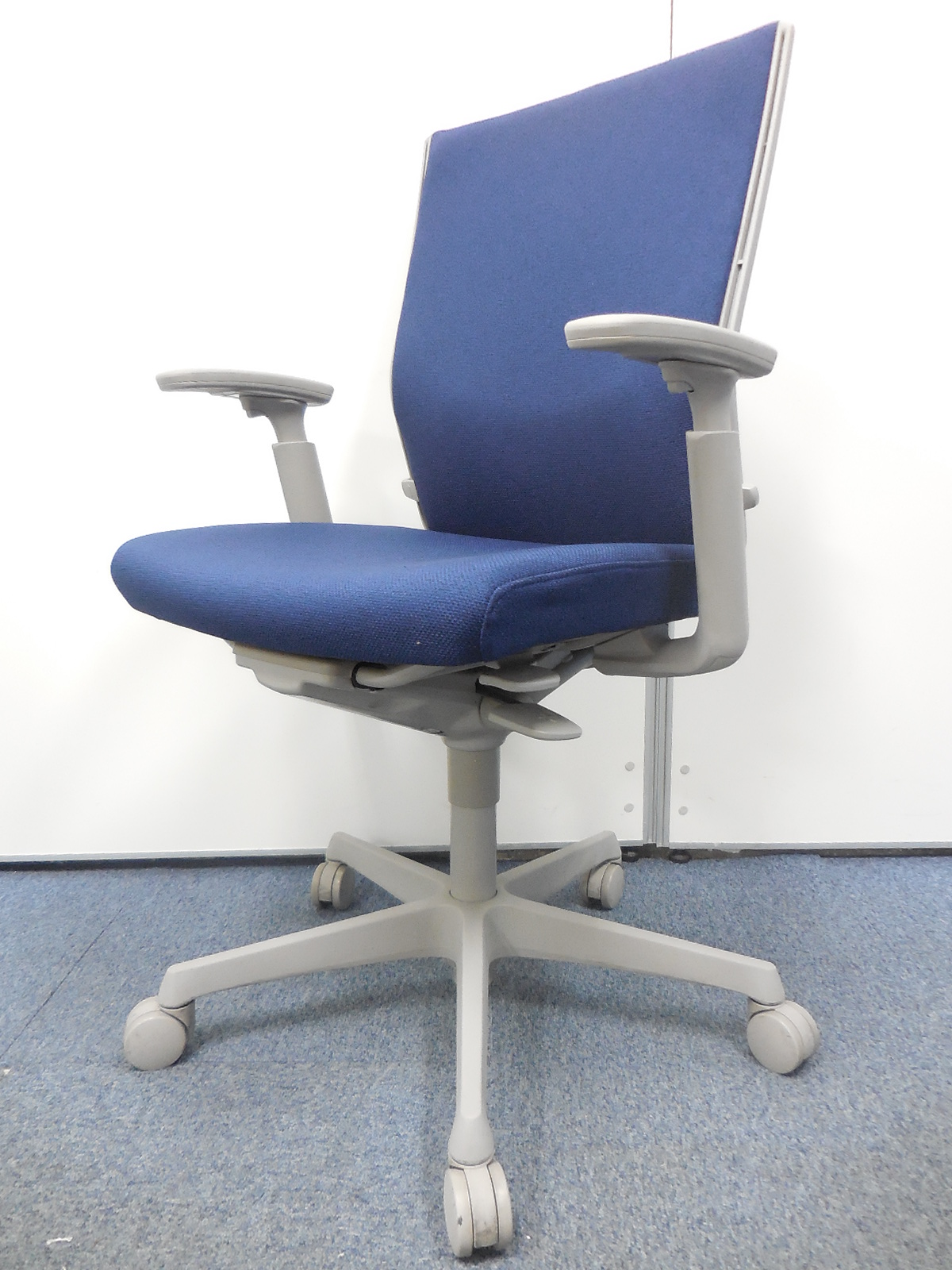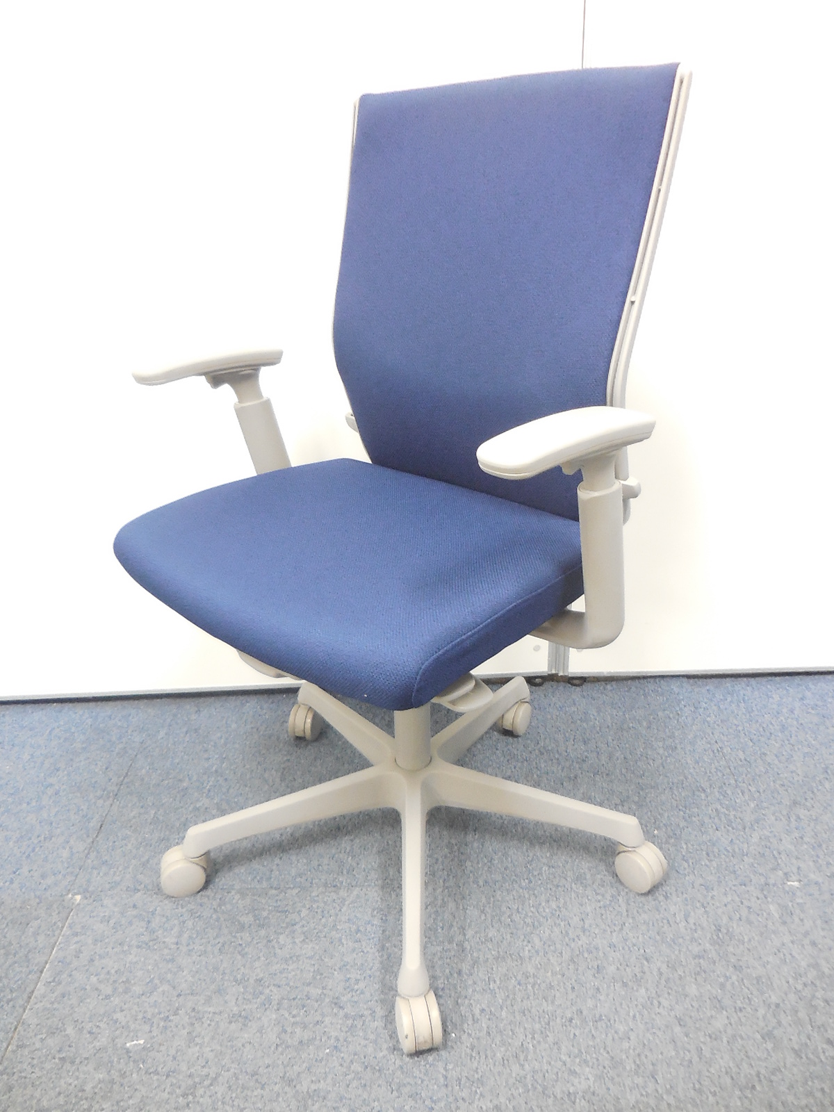 【関西倉庫在庫】■オカムラ(okamura)製 エスクードチェア 肘付ローバックチェア ■ダークブルー×グレーシェル ■デザインアーム ■ランバーサポート 【弊社使用欄:A01029268】