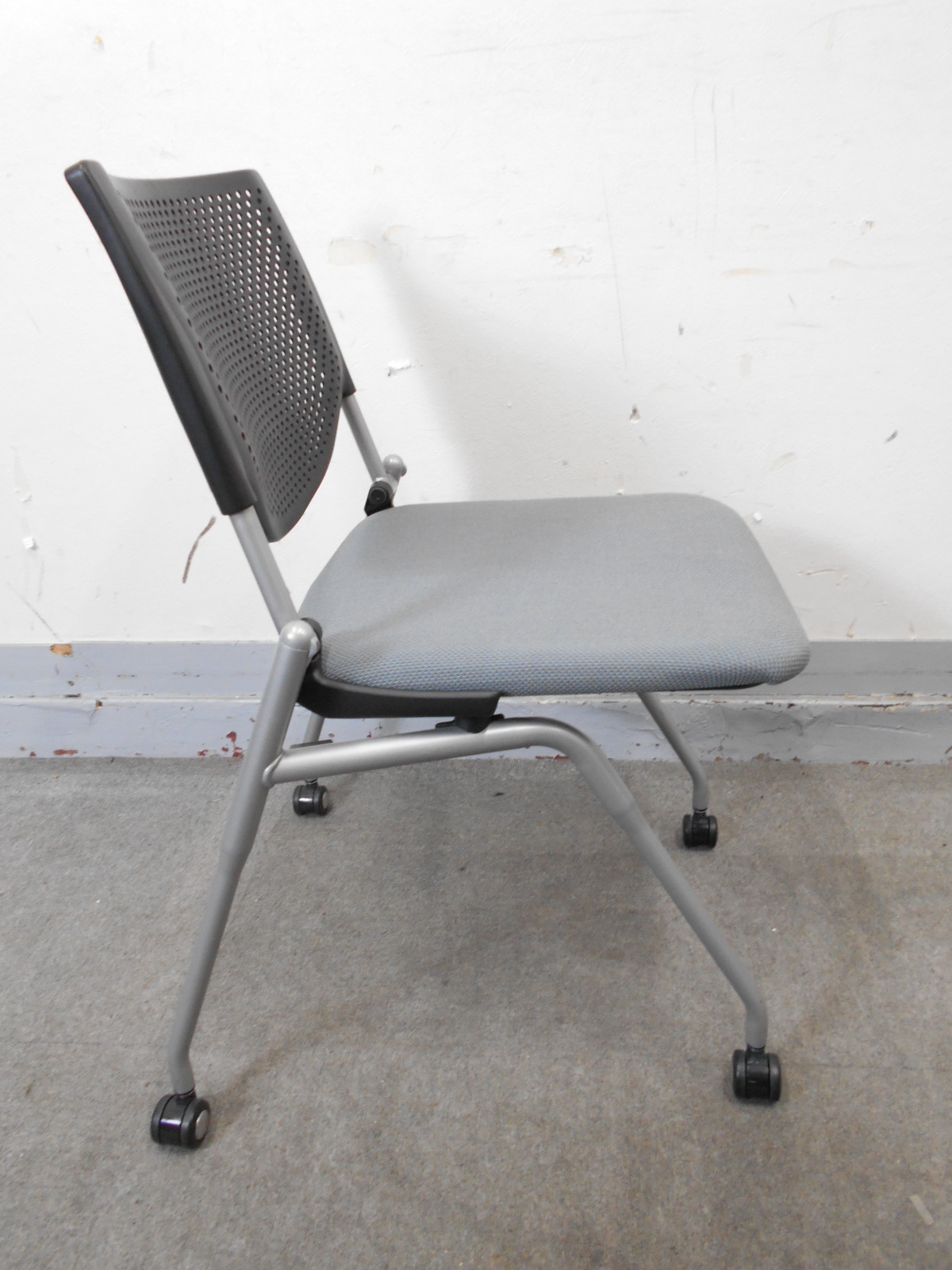スペース空間を最大限に生かせる座面が跳ね上げ可能なネスティングチェア! ■オカムラ/プロスタック/グレー