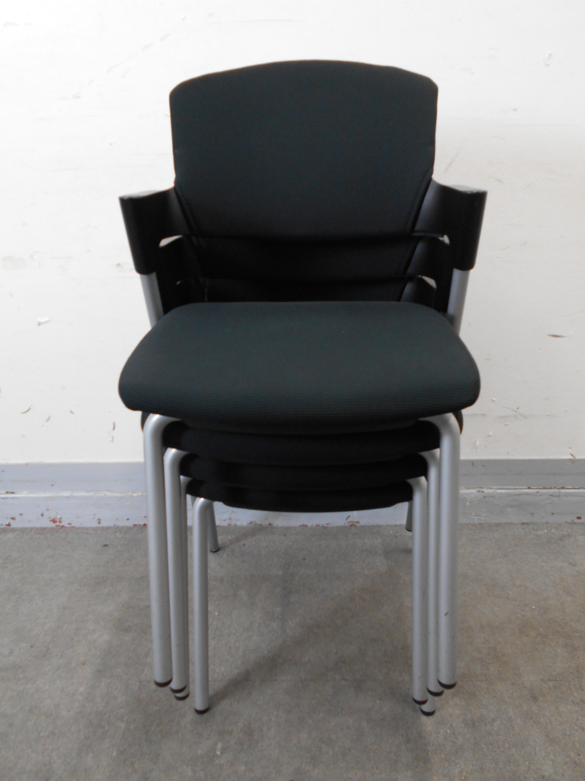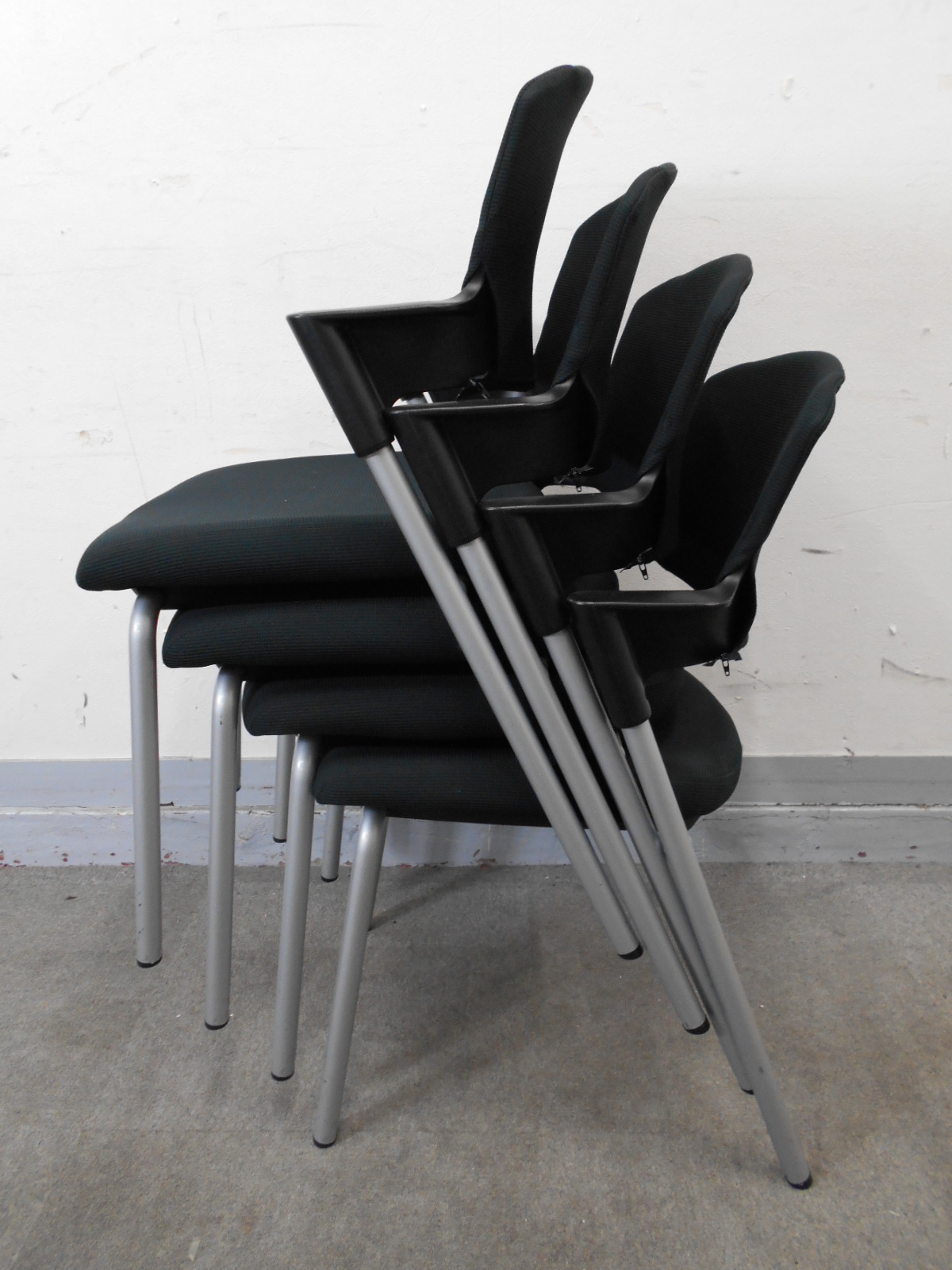 【セット商品(チェア×4脚)】【シンプルスマートなスタッキングチェア!分厚いクッションで長時間でも快適な座り心地!】/オススメ(おすすめ) /人気商品【弊社使用欄:A01037619】■スタッキングチェア 肘付ミーティングチェア ■固定肘 ■キャスター付 ■ブラック ■背面樹脂/コクヨ(KOKUYO/プロッティ