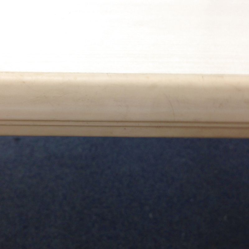 - かなり強い濃い黄ばみ・変色が商品全体にある。(例、天板、幕板、棚板、サイド部分、脚部等にある。)