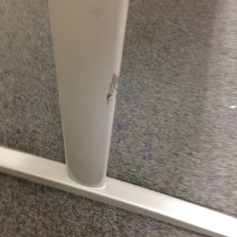 - 壊れている天板歪み、アジャスター無し、キャスター使用不可のようにそのテーブルの本来の効用を果たすための機能に不具合がある。