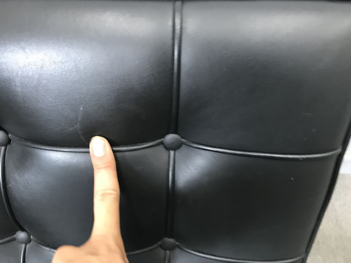 - 目立つ箇所複数あり深い傷・破れ・ほつれ・へたり・しわが商品全体にある。(例、座面・背もたれ、脚部等にある。)