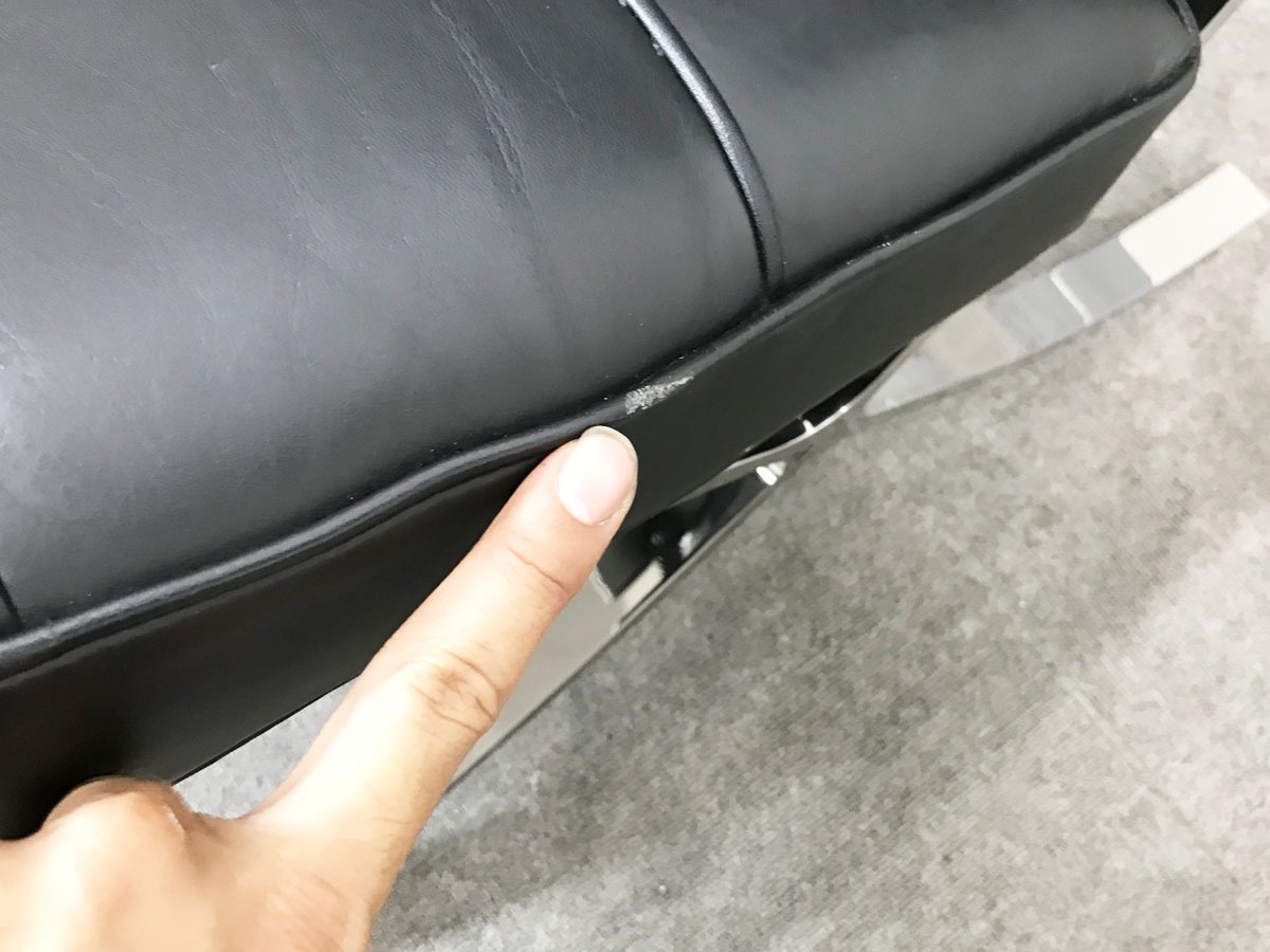 - 目立つ箇所あり傷・破れ・ほつれ・へたり・しわが多数または深い傷・破れ・ほつれ・へたり・しわが一部ある。※座面・背もたれ、シェル、脚部等にある。