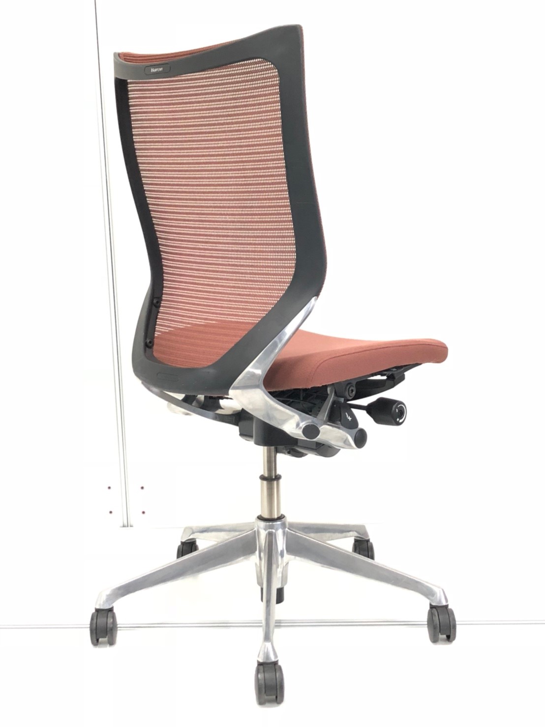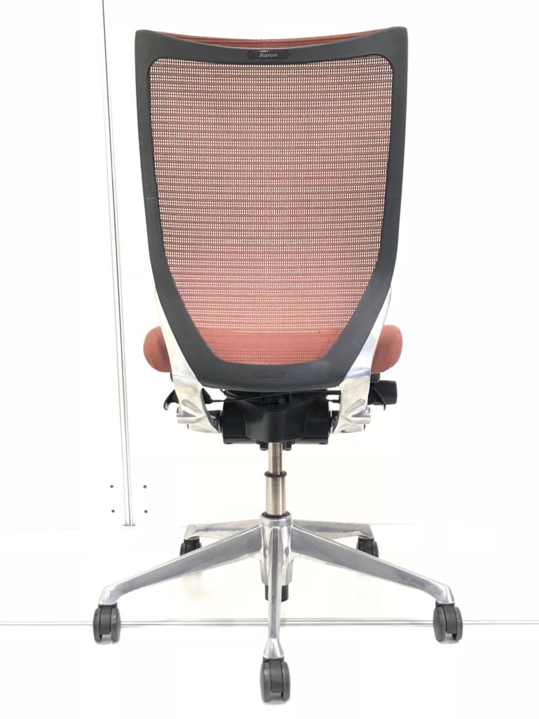 発売当時、既に人気を博していたオカムラの高級チェア、コンテッサから手元で座高調整ができるスマートオペレーション機能を取り除くなどしてリーズナブルにしたのがバロンです。その際に少しだけコンパクト化されました。そのことが、日本人の体格、日本のオフィス、家庭環境に適し、国内で多くのシェアを獲得する要因の一つになったのではないかと思います。