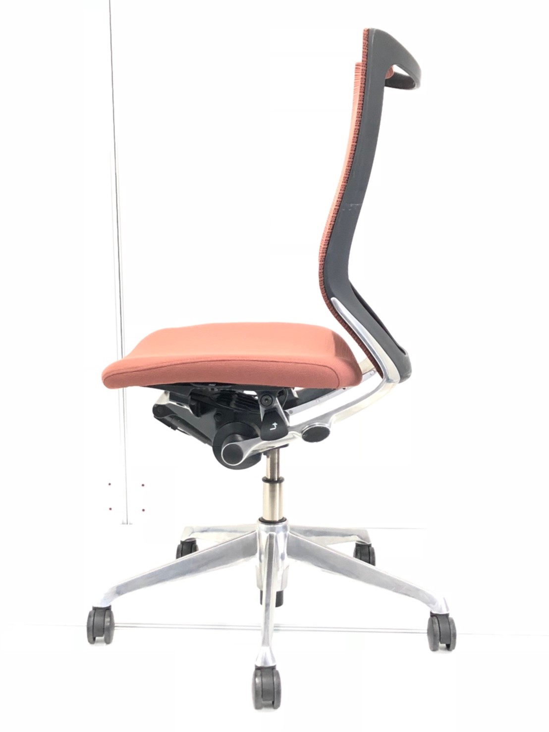 気に入っているのはリクライニング調整の自由さです。同じオカムラ社製の上位モデルや下位モデルも、角度が5段階程度の固定位置だったり、リクライニング強度も4段階だったりしますが、バロンチェアはどちらも無段階。つまり完全に好きな位置、好きな強度に調整することができます。