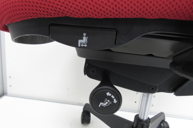 - 座面右下のダイヤル操作で、リクライニングの強弱調整が行えます。これまでのダイヤル式よりも、少ない回転数で、最弱?最強の調整が可能です。