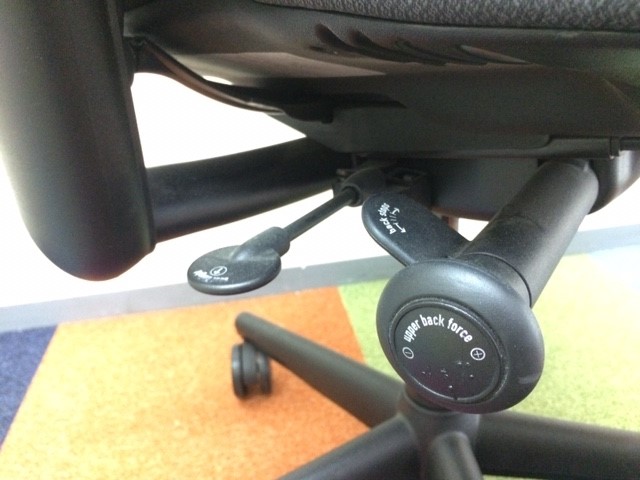 - 脊髄への負荷を軽減します。(もたれとのすき間を埋めて脊髄の自然なカーブをキープします)背もたれの上下独立した調節機構は、リープチェアだけが持つテクノロジーです。
