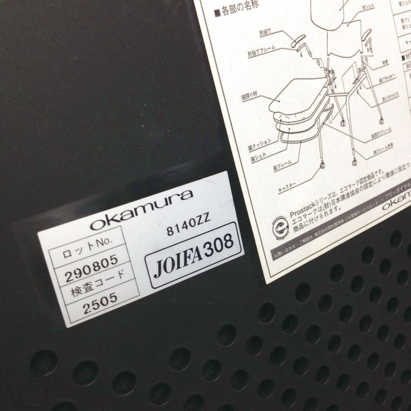 【4脚入荷】オカムラ(okamura)プロスタックチェア スタッキングタイプ ■色:座面グレー【2510】