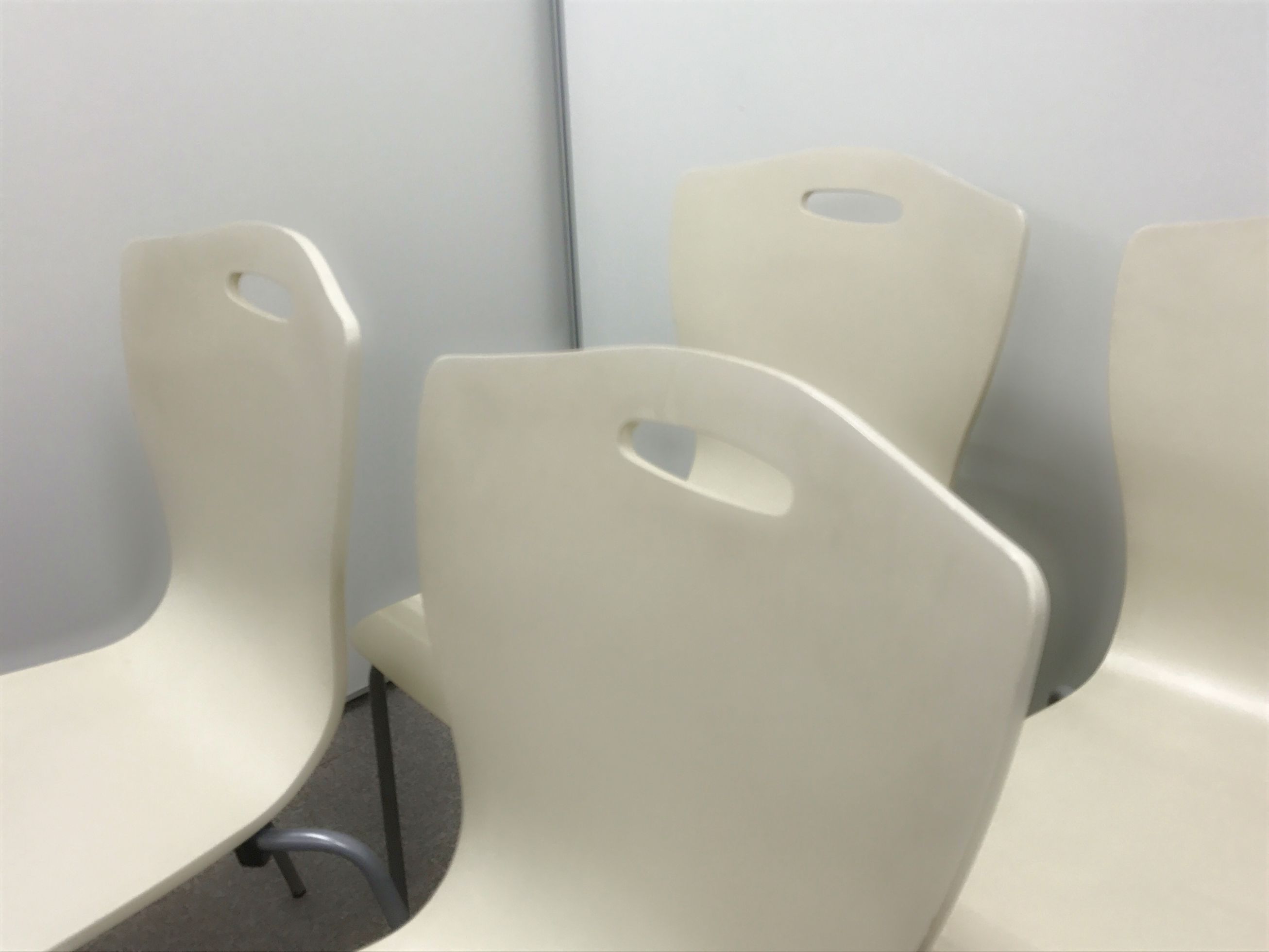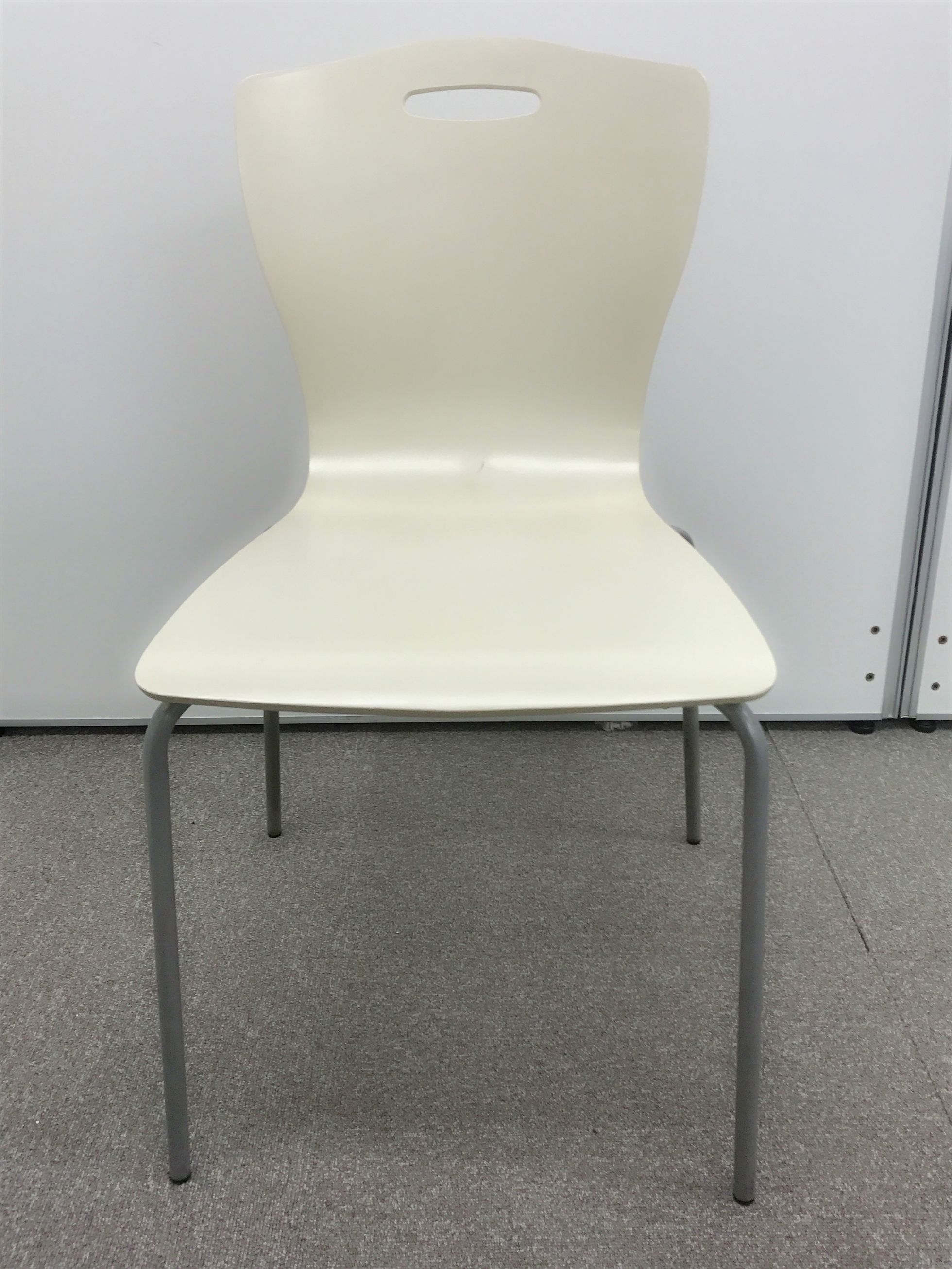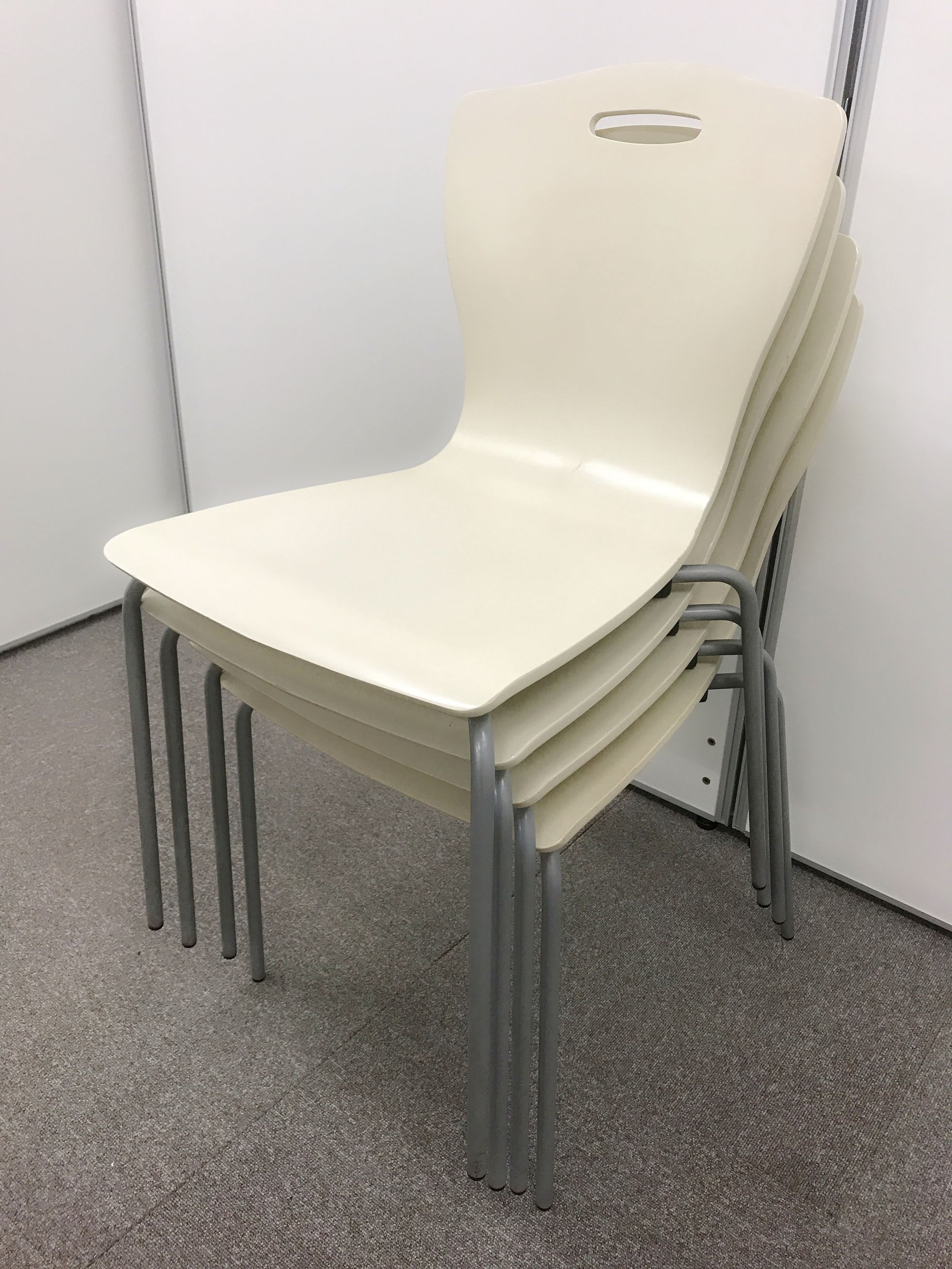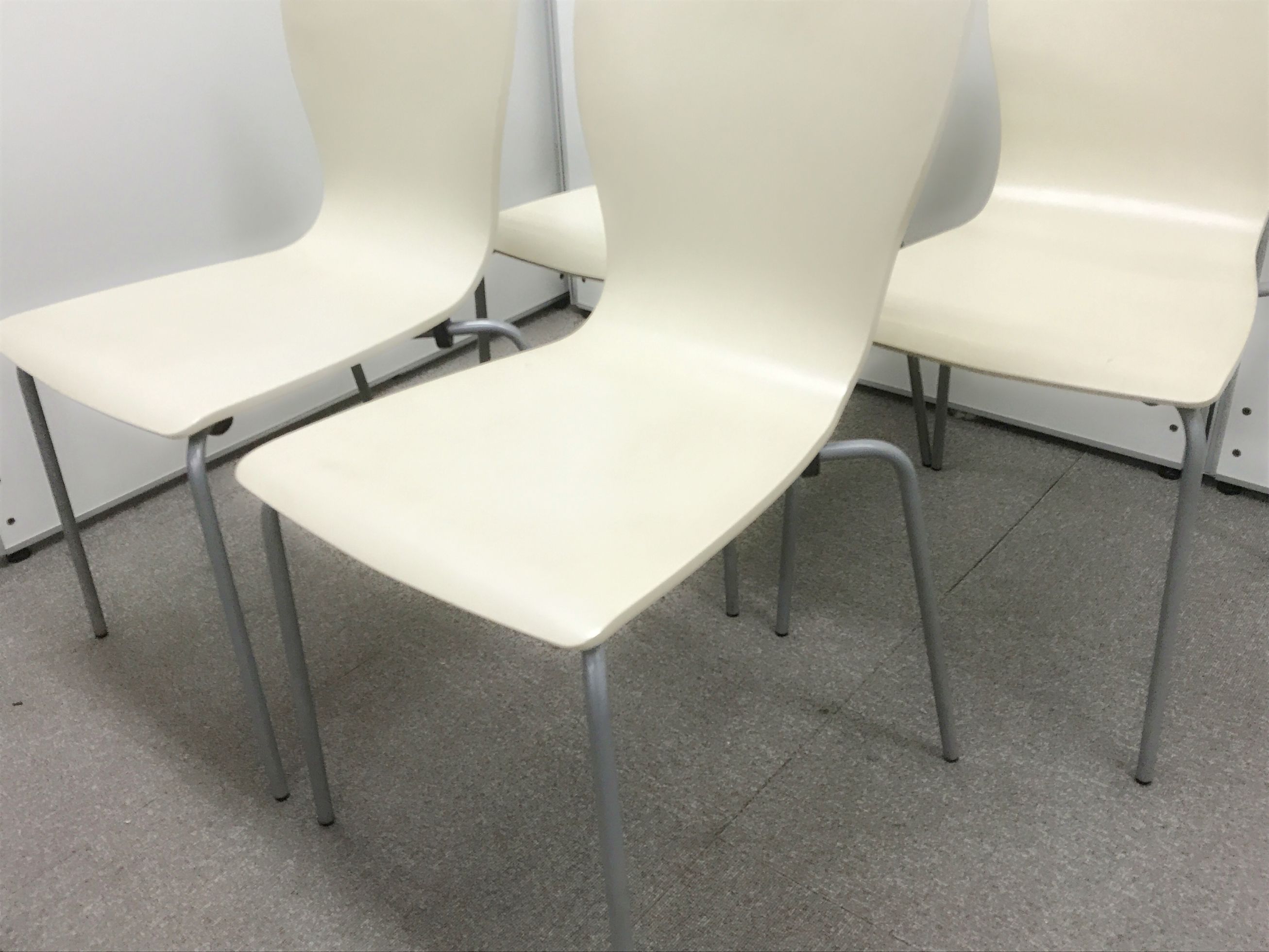 【纏めてお得4脚セット!】【ホワイト(若干アイボリー)×木製チェア】イトーキ製のミーティングチェア【重ねて収納◎】- 日本橋店