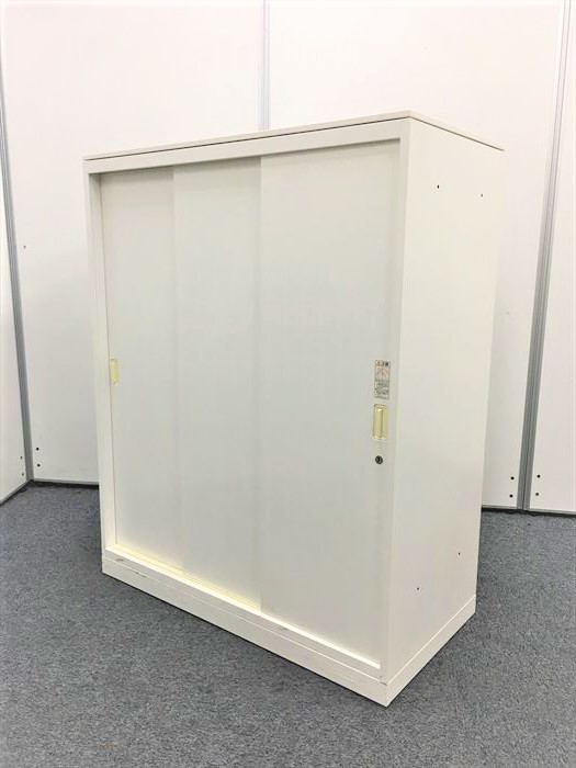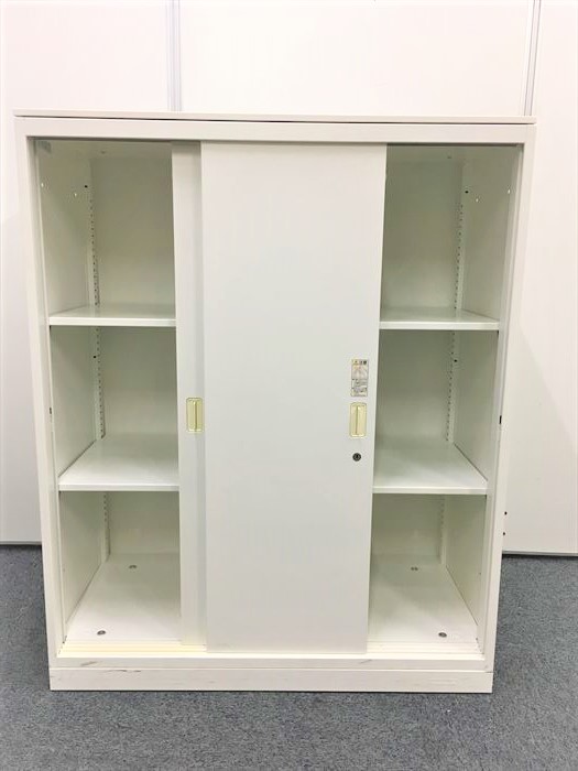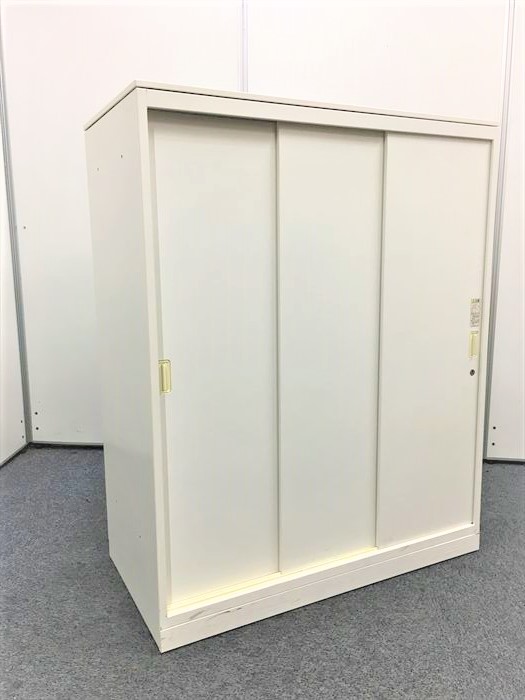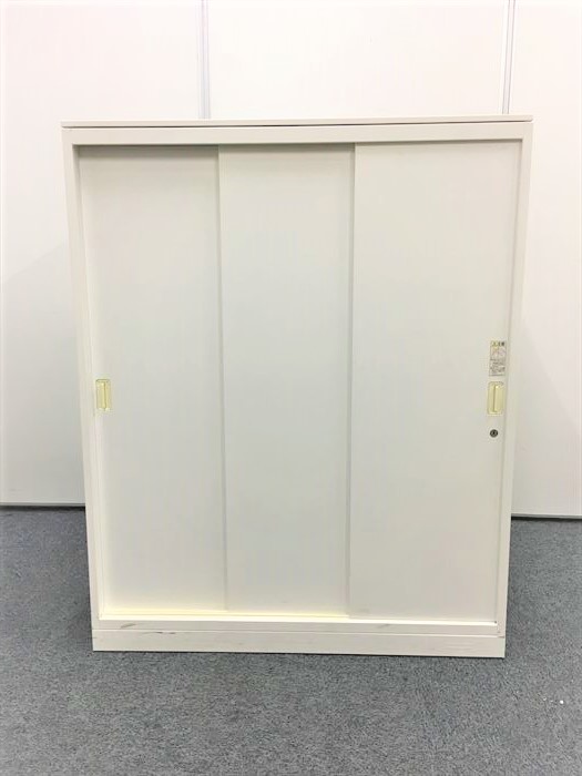 オカムラ製 人気レクトラインシリーズ ホワイト シリンダー W800xD450XH1050 3枚引戸 ※ベースなし 3枚引き違い書庫!!