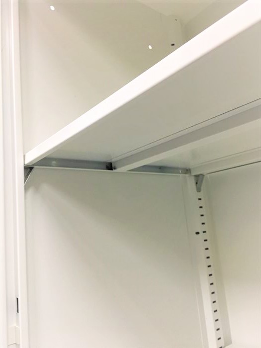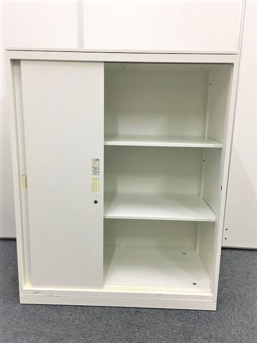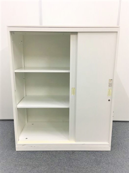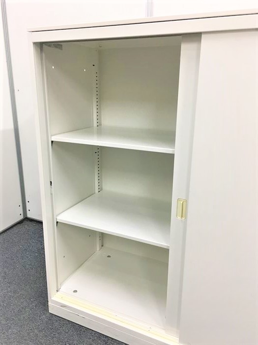 2枚引き戸書庫 オカムラ レクトライン 鍵付き シリンダー錠 ホワイト 天板無し スライド式の扉のため導線を邪魔しません