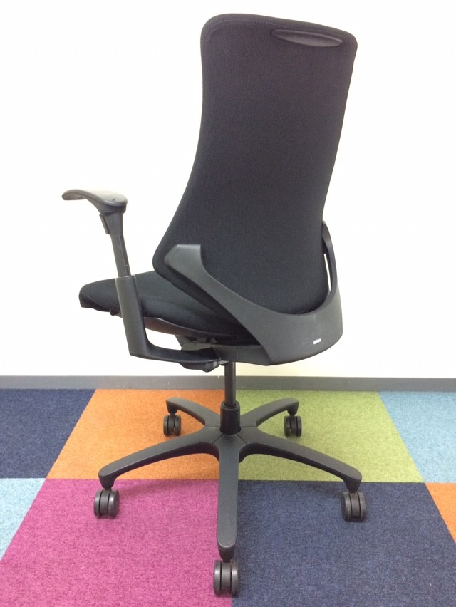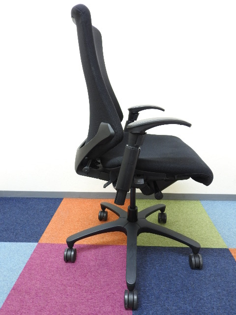 【三次元フォルムが腰にフィット!】希少なエラストマータイプ! ■イトーキ製 エフチェア 肘付 ブラック ハイバック ■姿勢の変化にフレキシブルに対応!