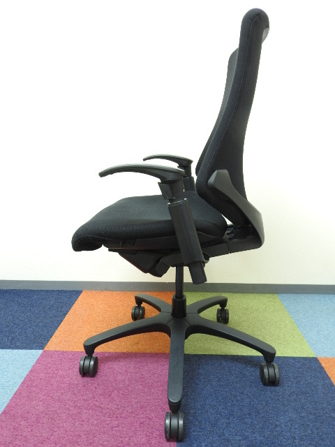 【1脚限定の為、お安く!】■イトーキ(ITOKI)エフチェア クロス仕様 肘付ハイバック ■ブラック ■ブラックフレーム ■可動肘