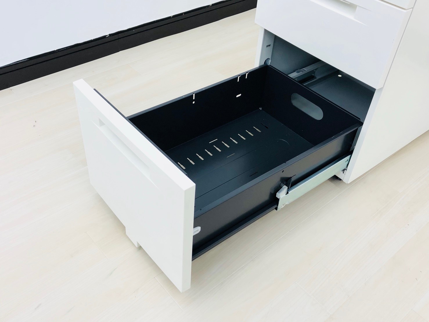 - 一部不具合ありその脇机・ワゴンの本来の効用を果たすための機能以外の一部が使用不可な状態。(例、引出が開閉しづらい、 キャスターロック機能使用不可、ラッチ不良 等がある。)