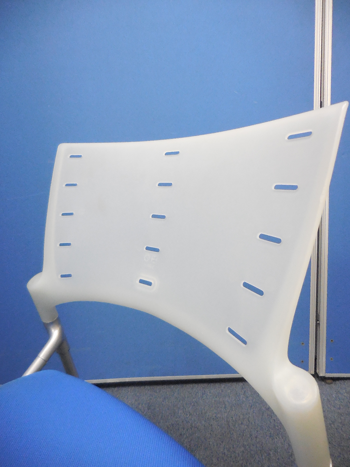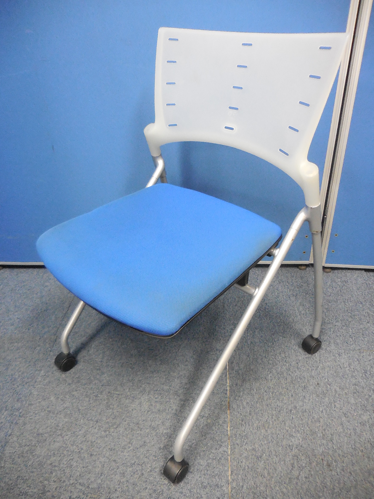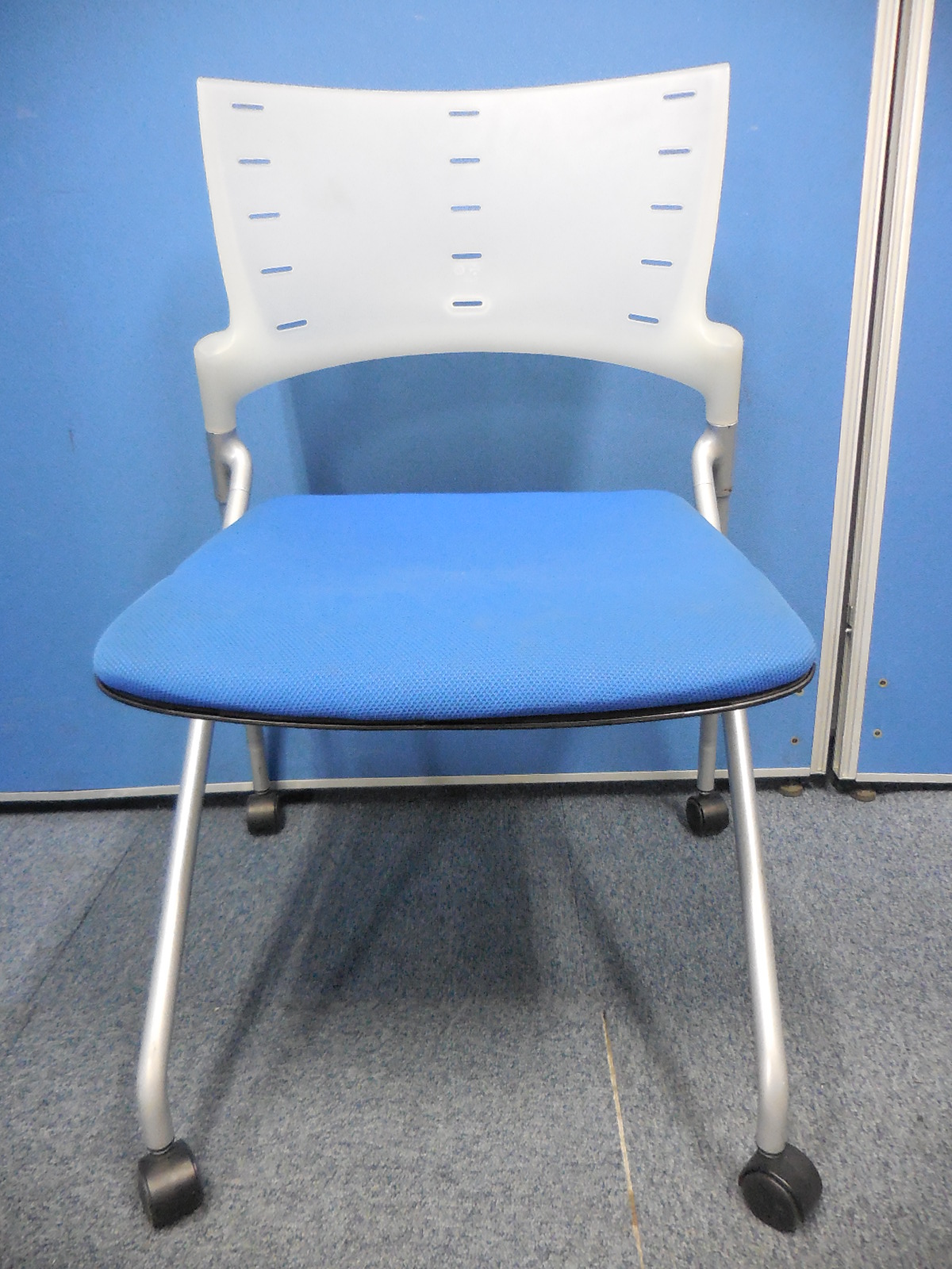 【定価6万円】【ソフトベンディングシェルが背を優しく受け止める!】■イトーキ(ITOKI) マノスチェア(MANOSS) 肘無し スタッキングチェア ミーティングチェア ■背パッド付 ■キャスター脚 ■ブルー
